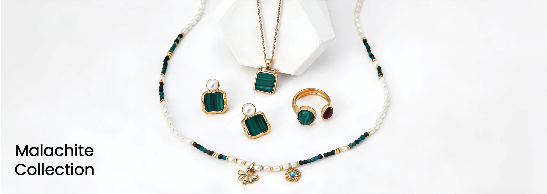 925 Sterling Silver Minimalist Natural Pearl and Malachite Double-Strand Bracelet B0172