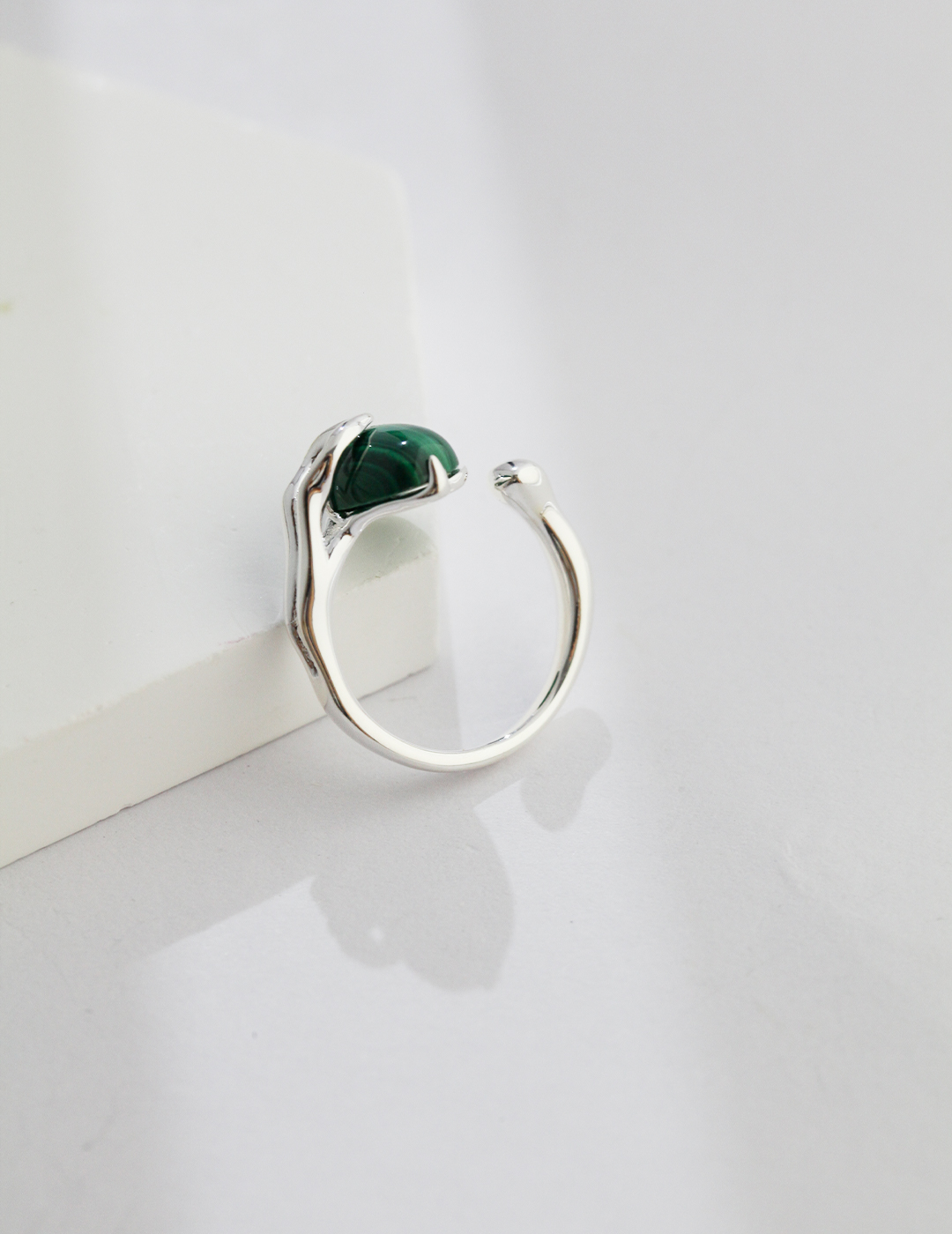 925 Sterling Silver Malachite Adjustable Open Ring R0132