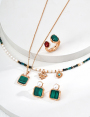 925 Sterling Silver Malachite Minimalist Square Pendant Necklace N0646-2