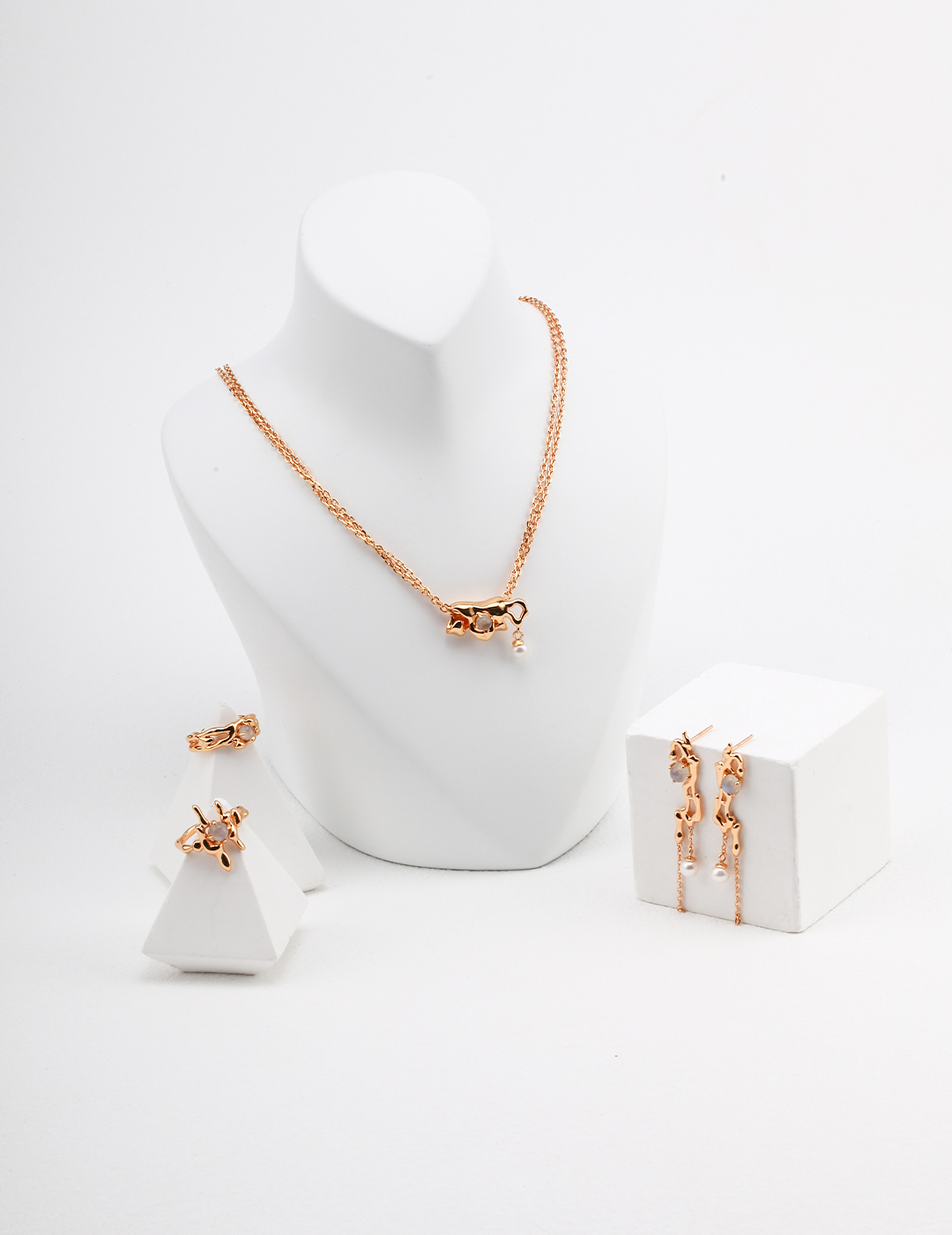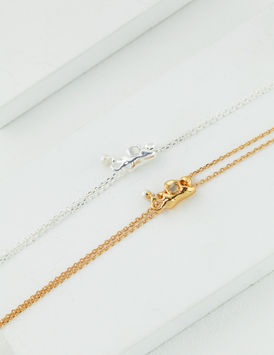925 Sterling Silver Natural Pearl Gray Moonstone Necklace N0306