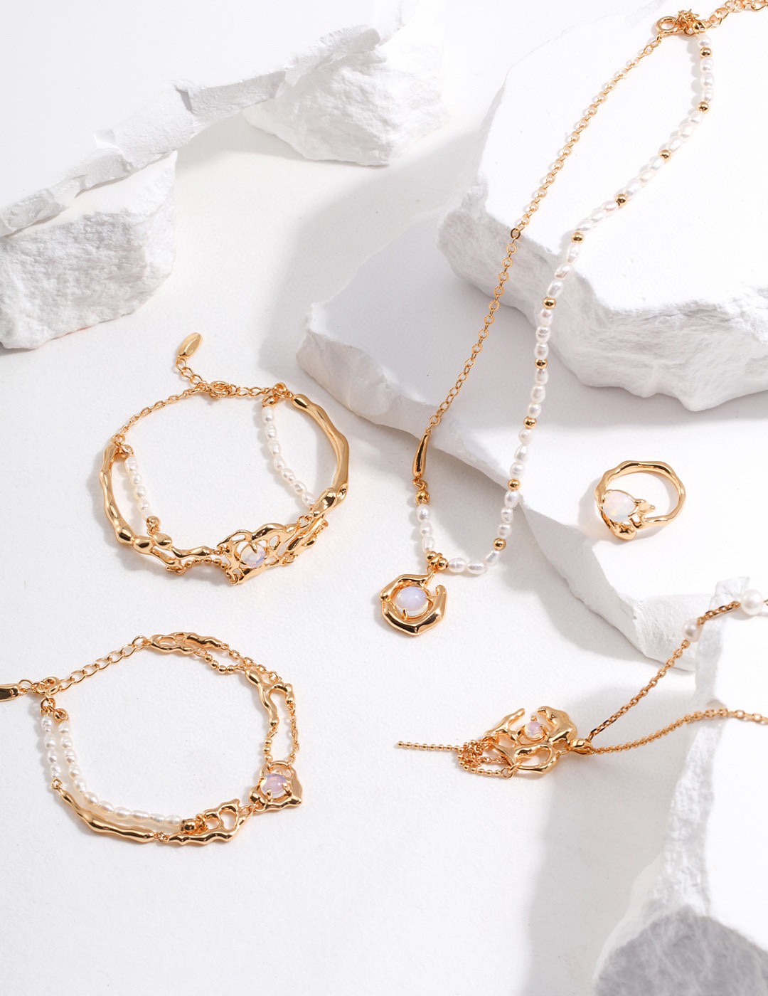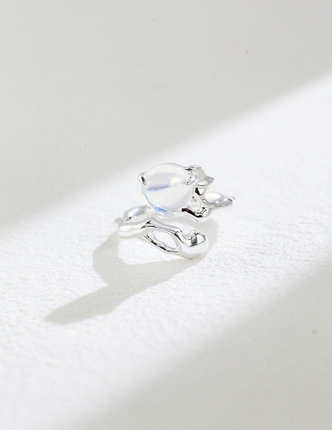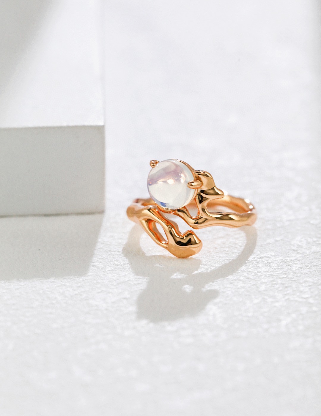 925 Sterling Silver Opal Irregular Adjustable Open Ring R0129