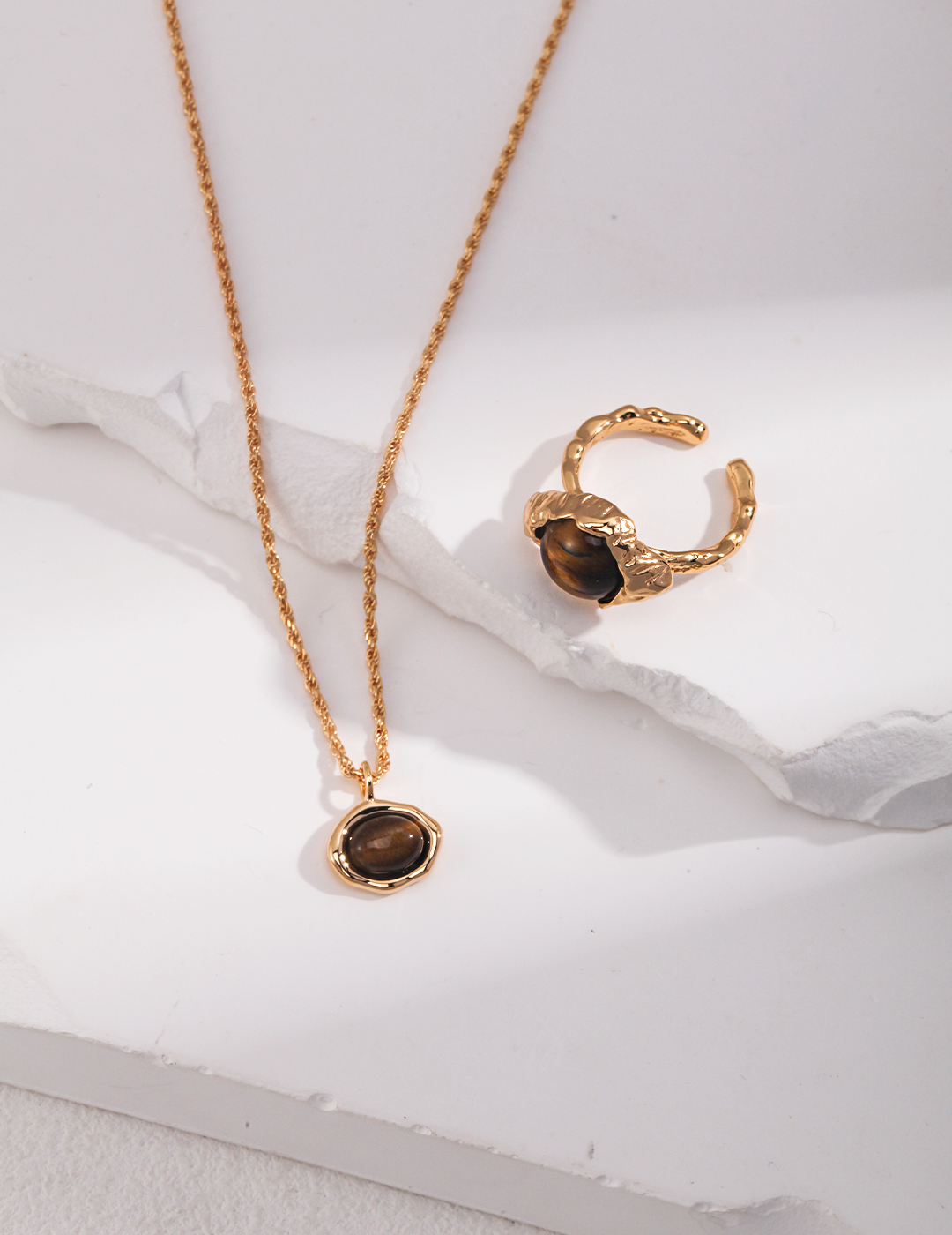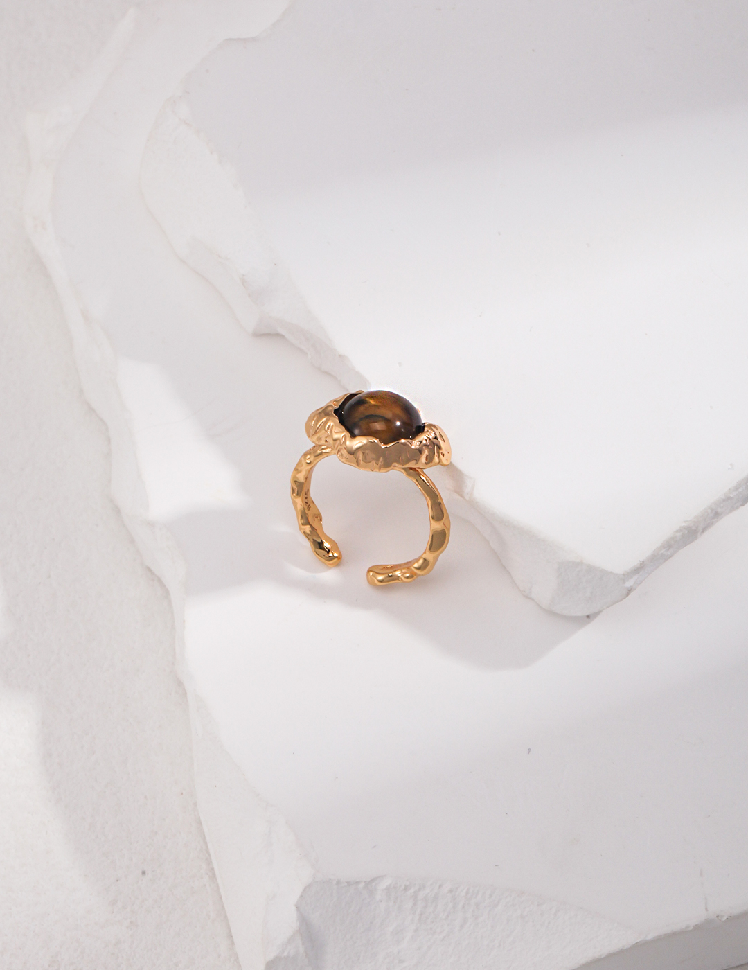 925 Sterling Silver Tiger's Eye Adjustable Open Ring R0205