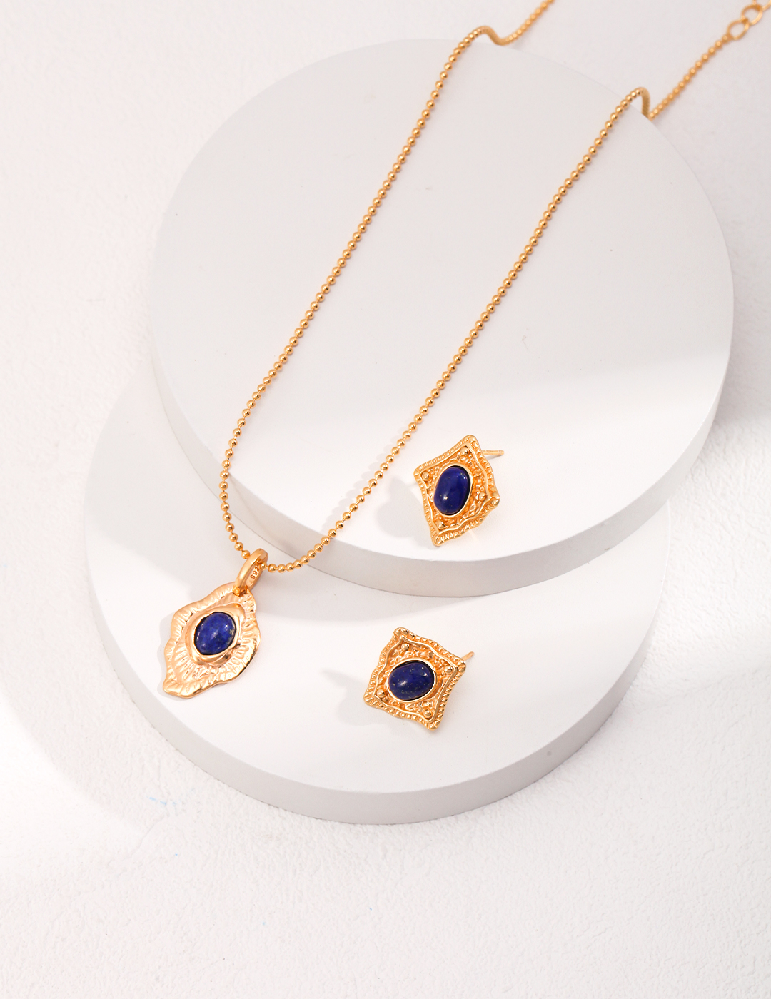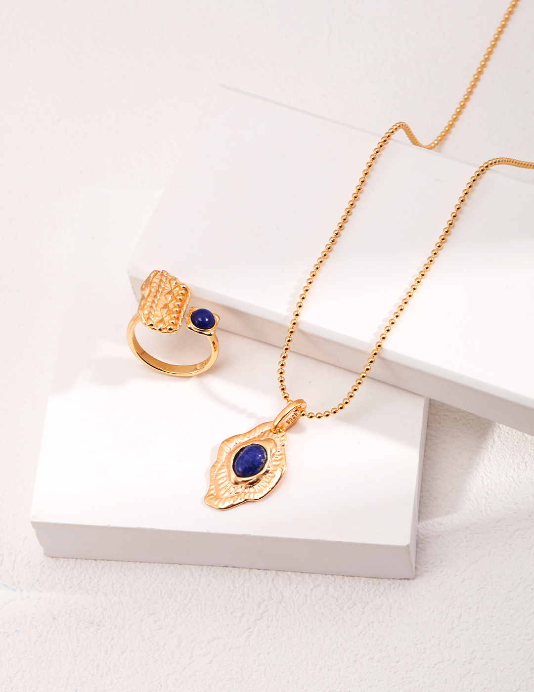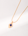 925 Sterling Silver Hand-Carved Pattern Lapis Lazuli Pendant Necklace N0462