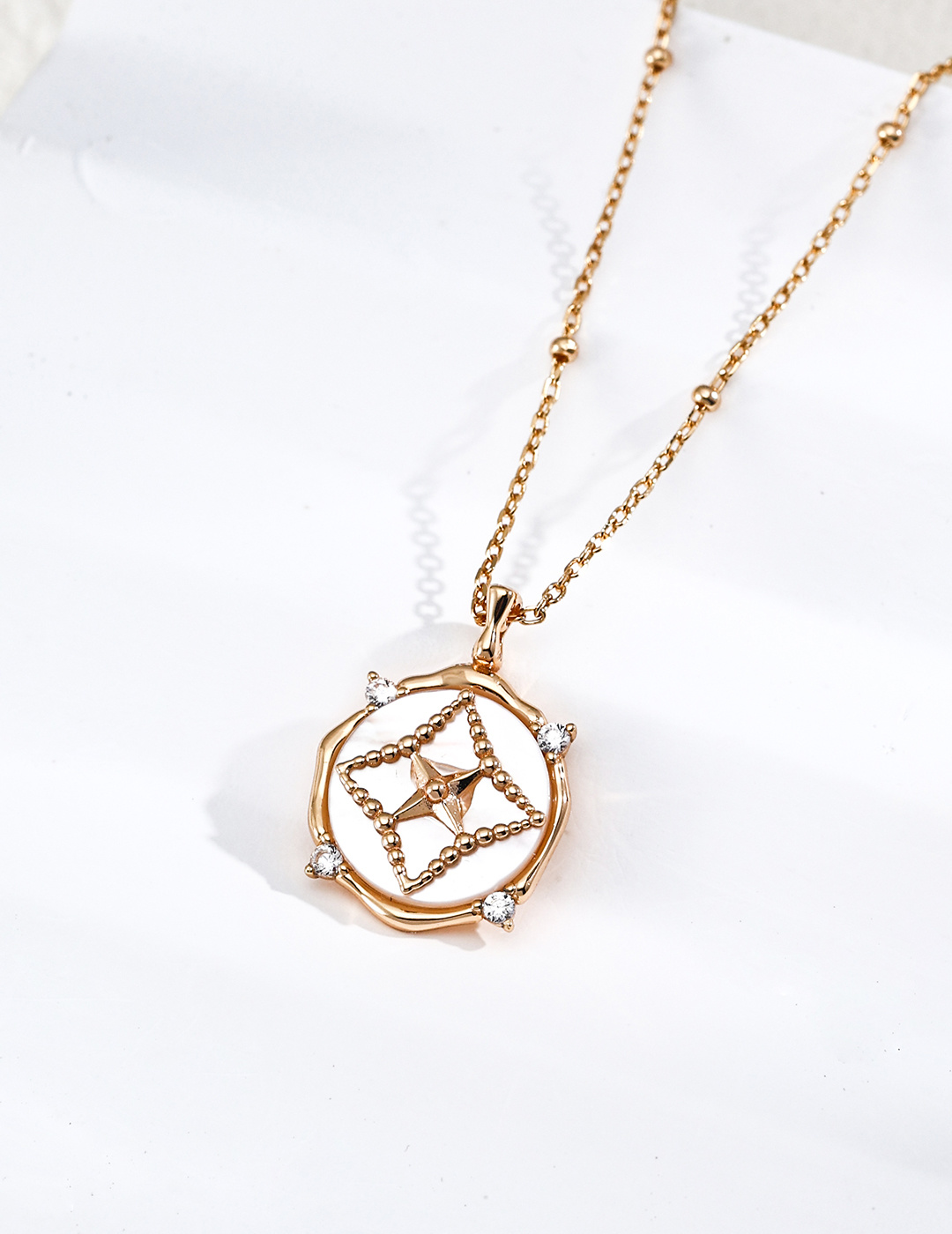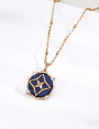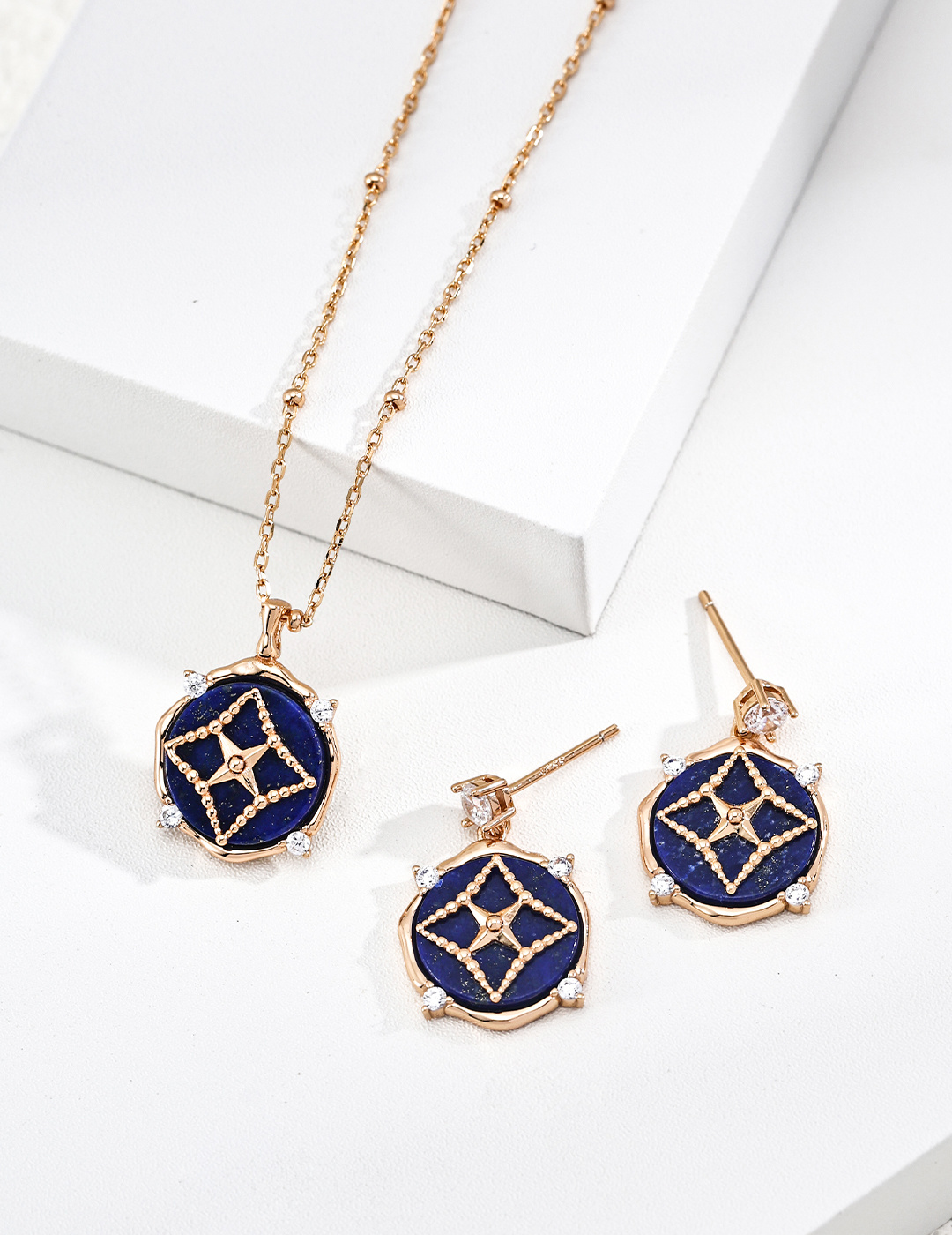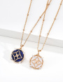 925 Sterling Silver Lapis Lazuli and White Mother-of-Pearl Star-Patterned Natural Stone Round Pendant Necklace N0716