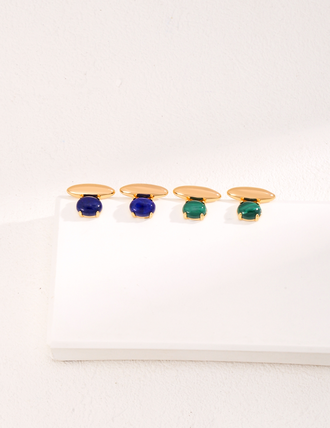 925 Sterling Silver Lapis Lazuli/Malachite Minimalist Stud Earrings E01060