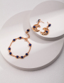 925 Sterling Silver Lapis Lazuli Openwork Moon-Shaped Pendant Earrings E0914