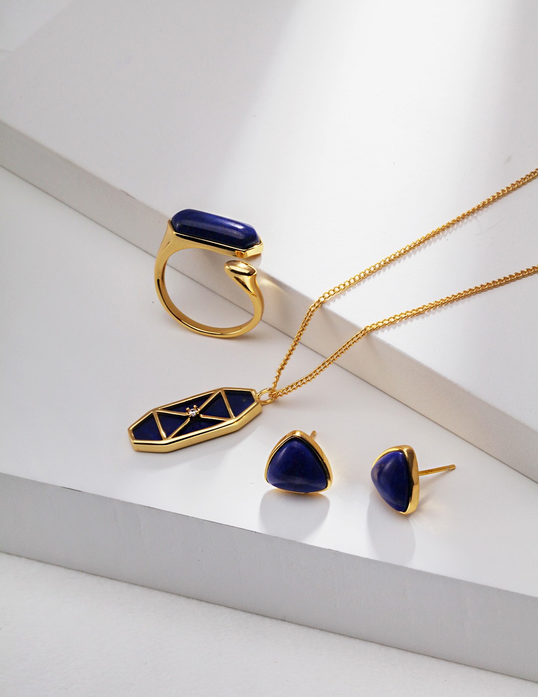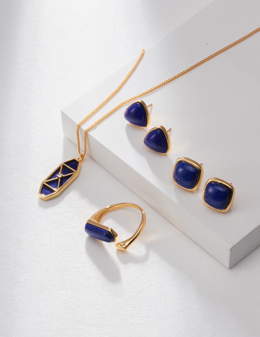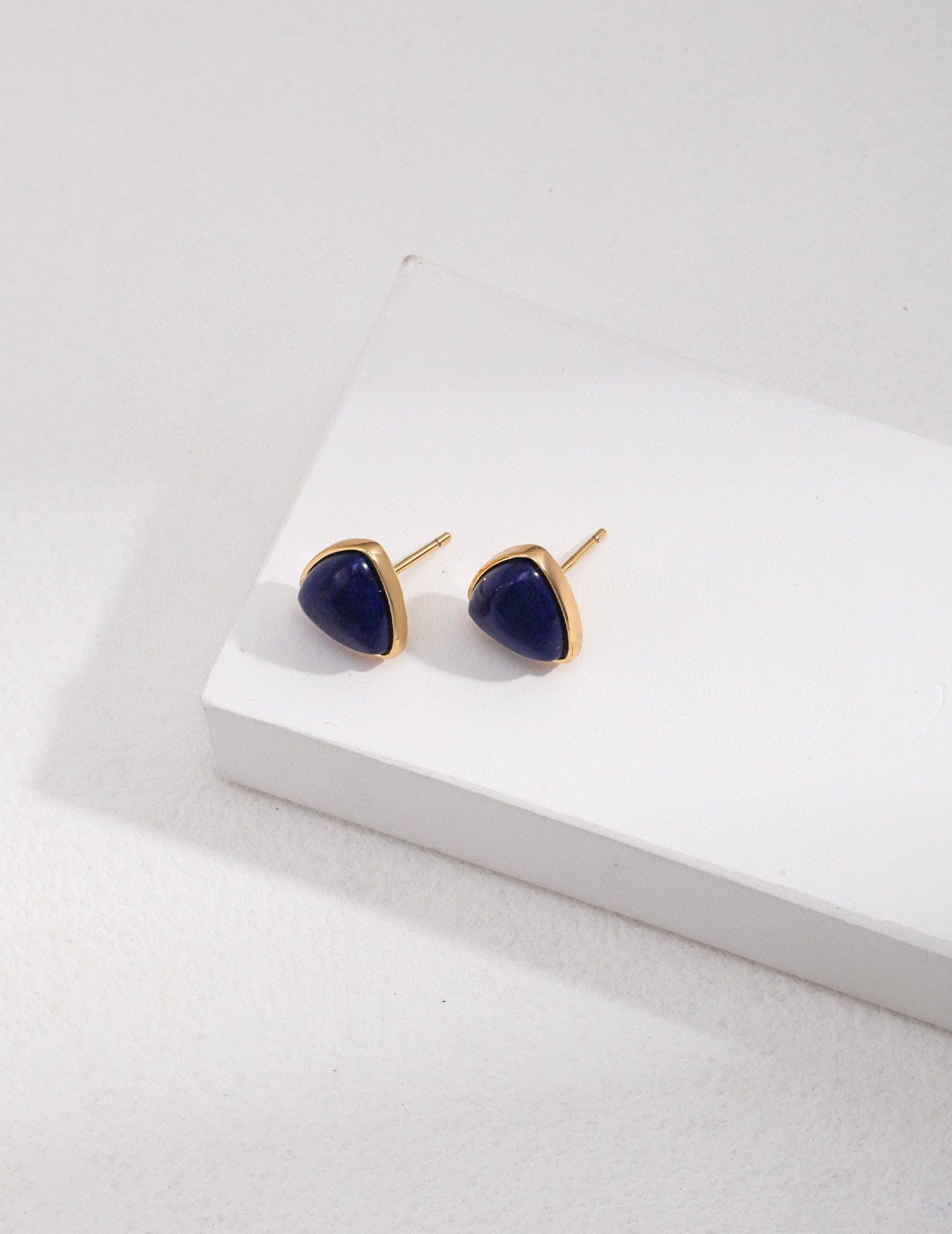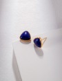 925 Sterling Silver Natural Lapis Lazuli Triangle Stud Earrings E0894