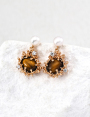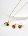 925 Sterling Silver Natural Pearl Zircon Coral-Shaped Tiger's Eye Pendant Earrings E01422-2