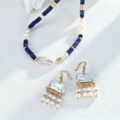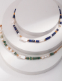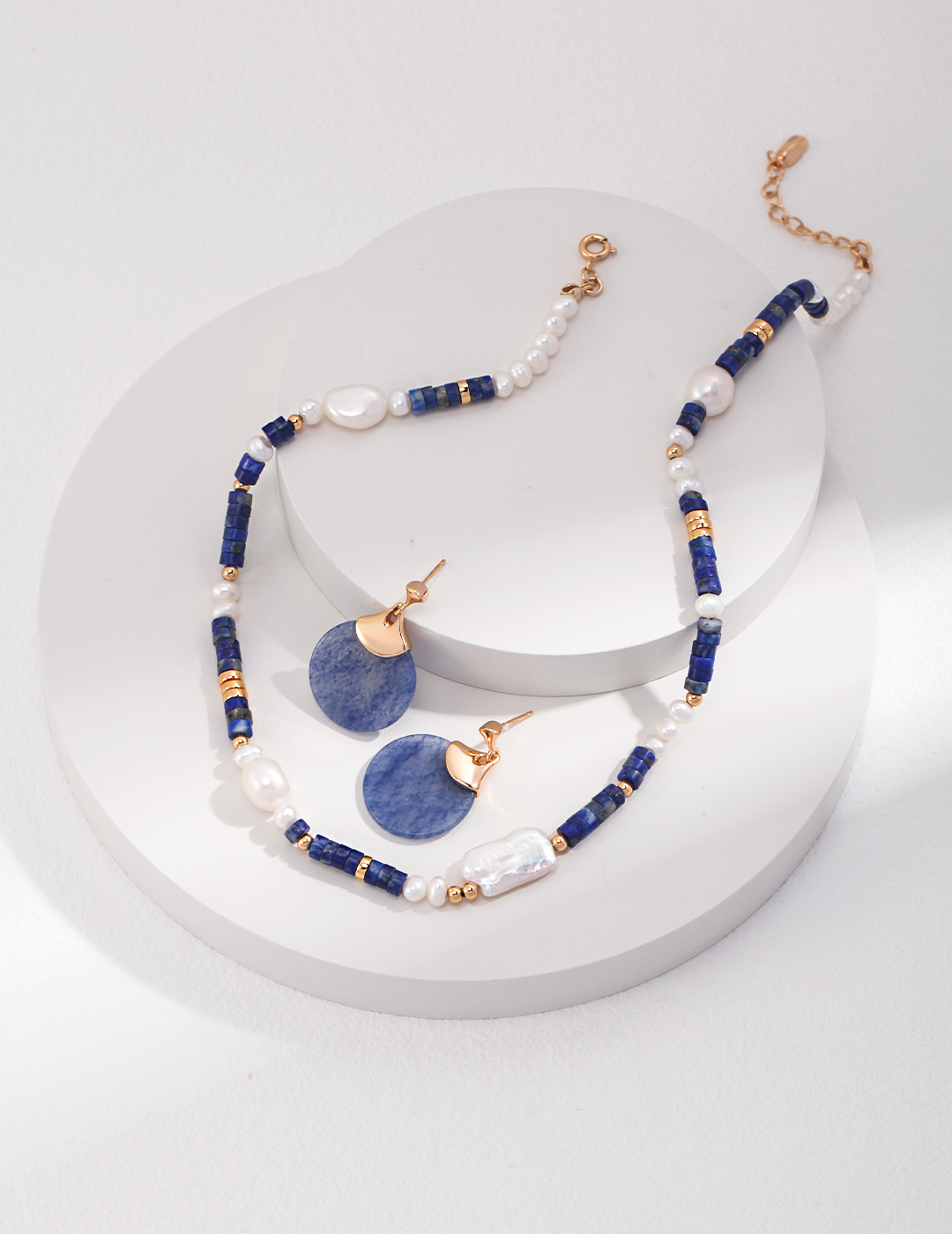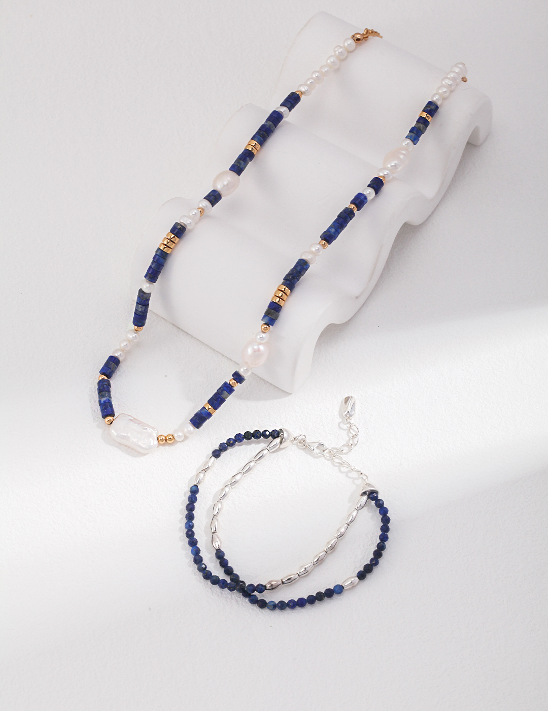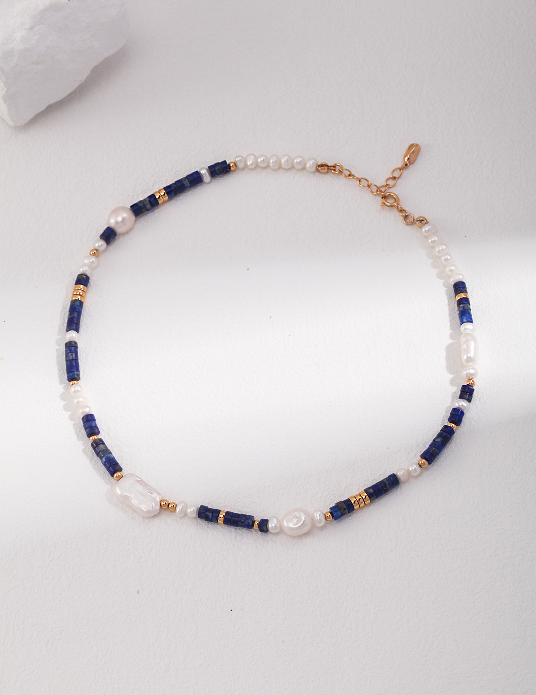 925 Sterling Silver Pearl Lapis Lazuli Necklace N0425