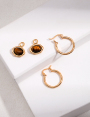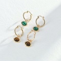 925 Sterling Silver Tiger's Eye and Malachite Pendant Hoop Earrings E0950
