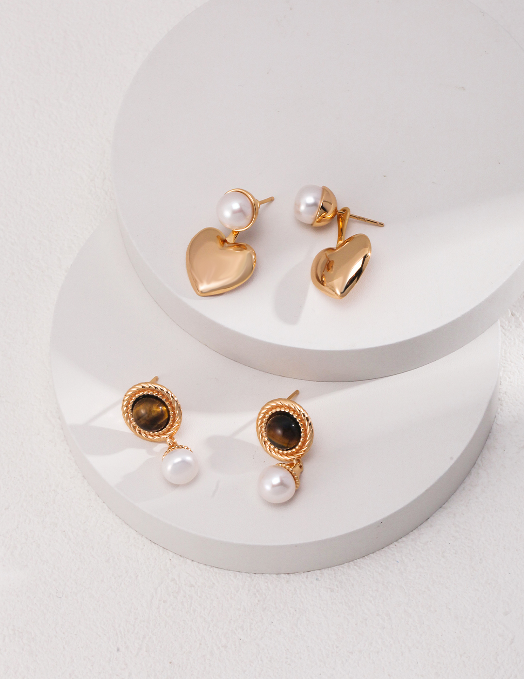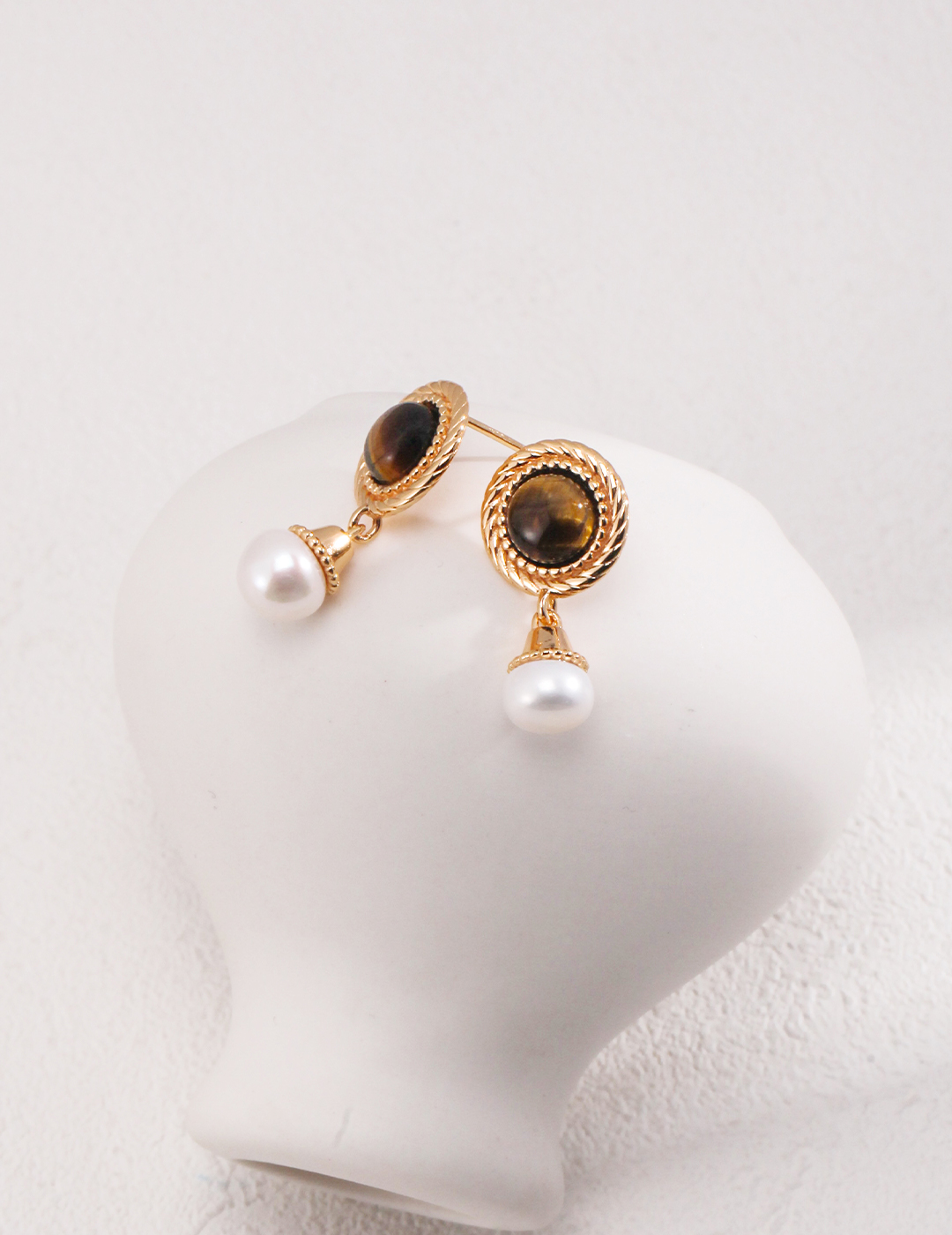 925 Sterling Silver Tiger's Eye Natural Pearl Pendant Earrings E01108
