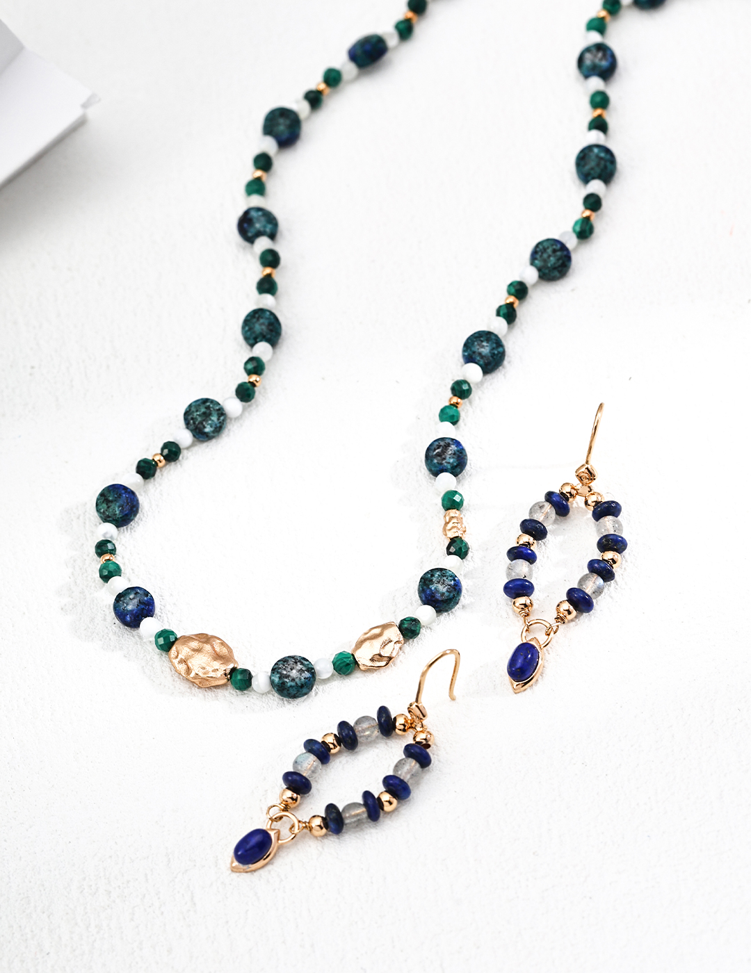 925 Sterling Silver Vintage Gray Moonstone Lapis Lazuli Earrings E01328-2