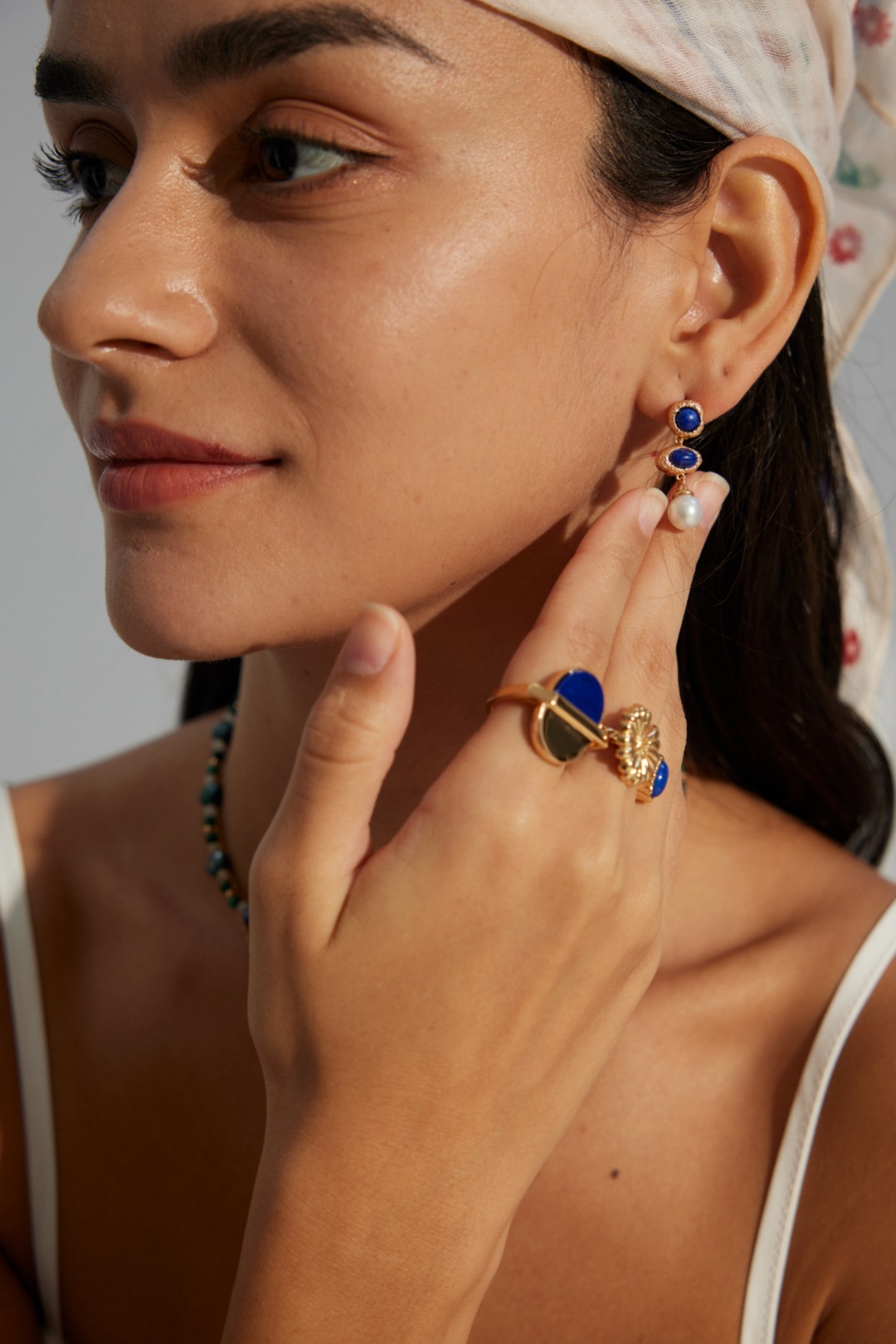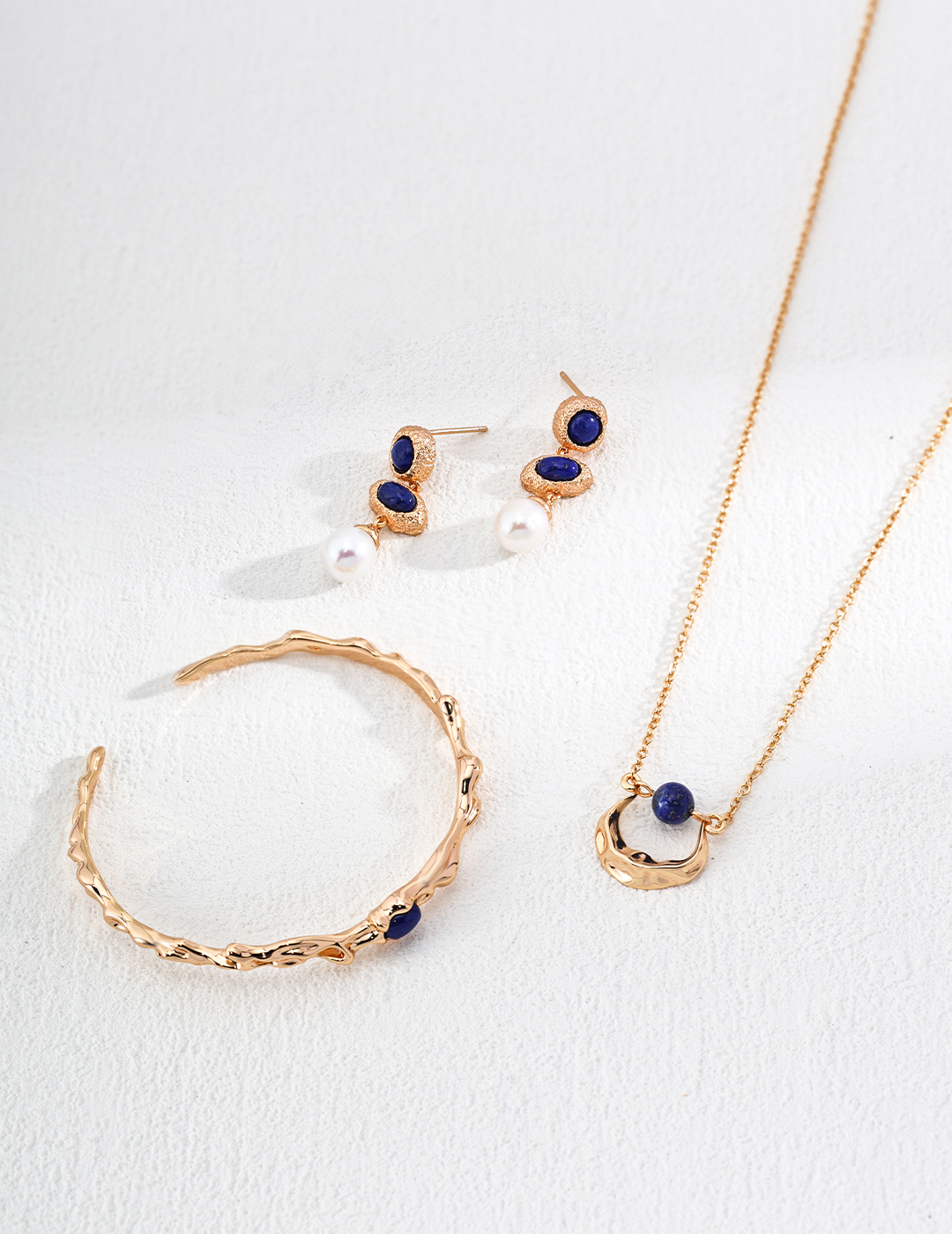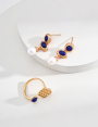 925 Sterling Silver Vintage Lapis Lazuli Natural Pearl Pendant Earrings E01169-2