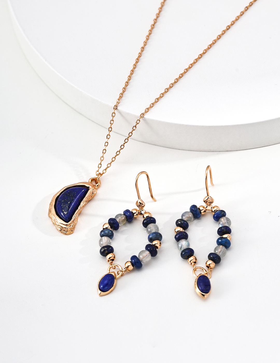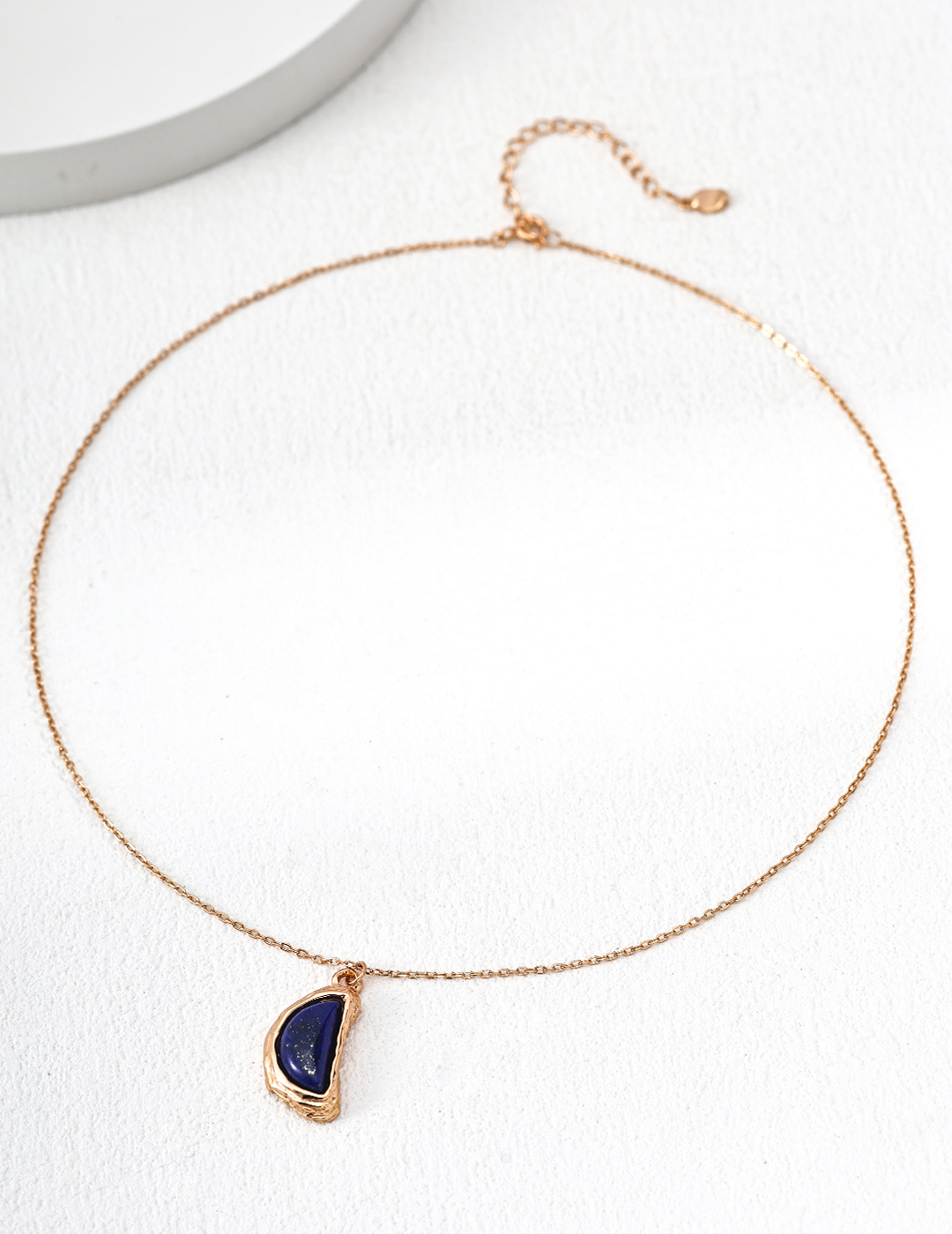 925 Sterling Silver Vintage Natural Lapis Lazuli Crescent Moon Pendant Necklace N0719-2