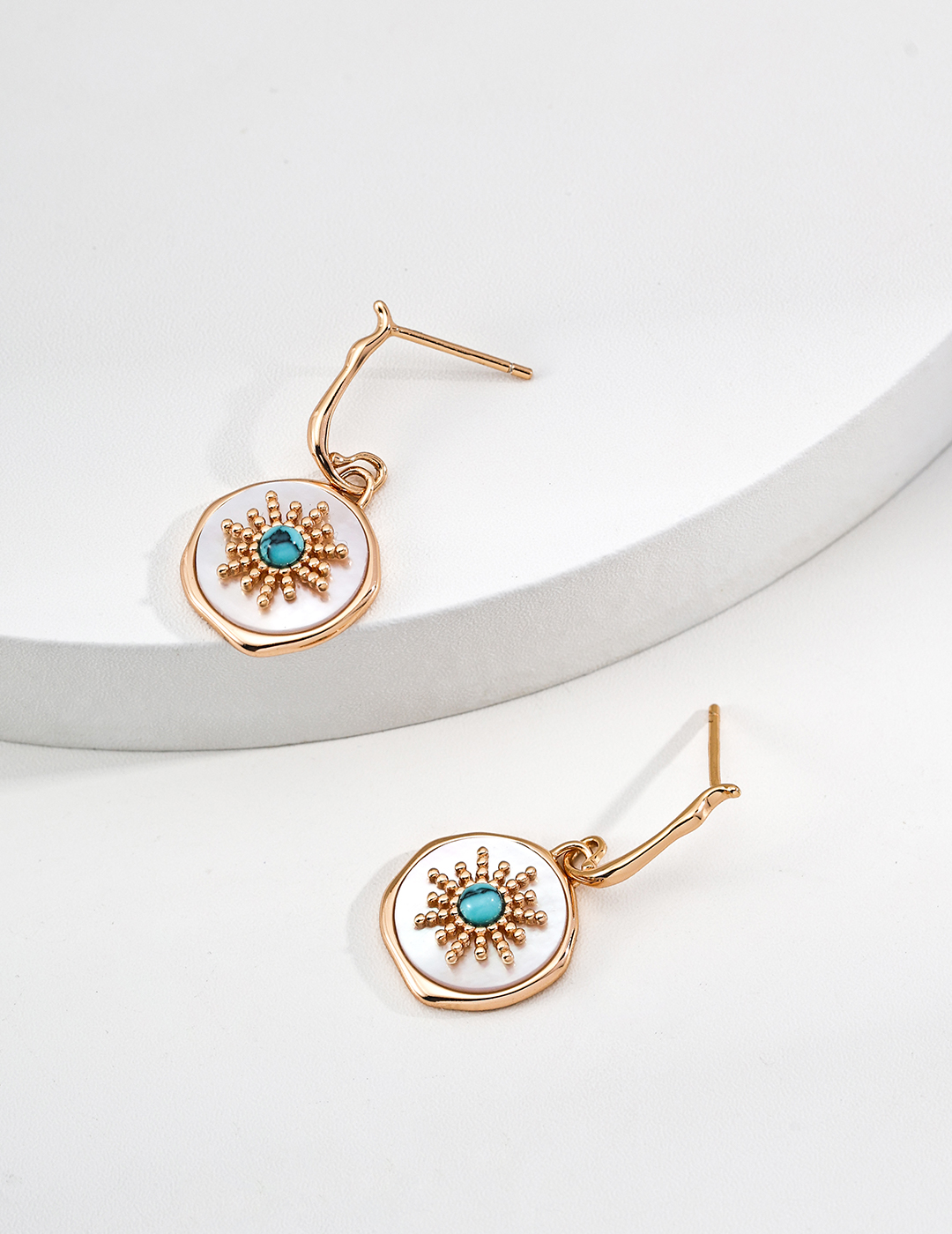 925 Sterling Silver White Shell Turquoise Round Pendant Earrings E01427-2
