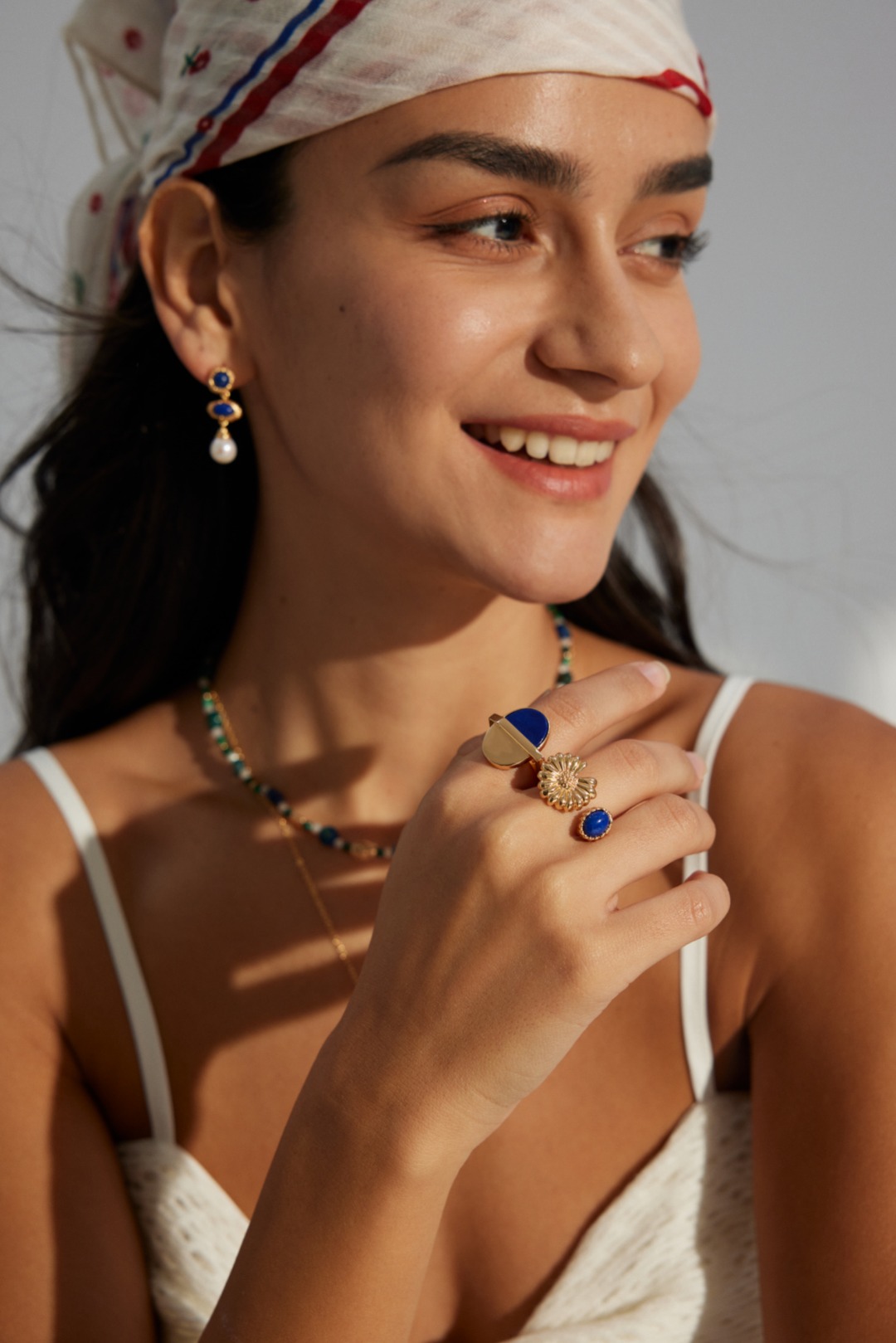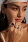 925 Sterling Silver Lapis Lazuli Minimalist Half-Circle Ring R0255-2