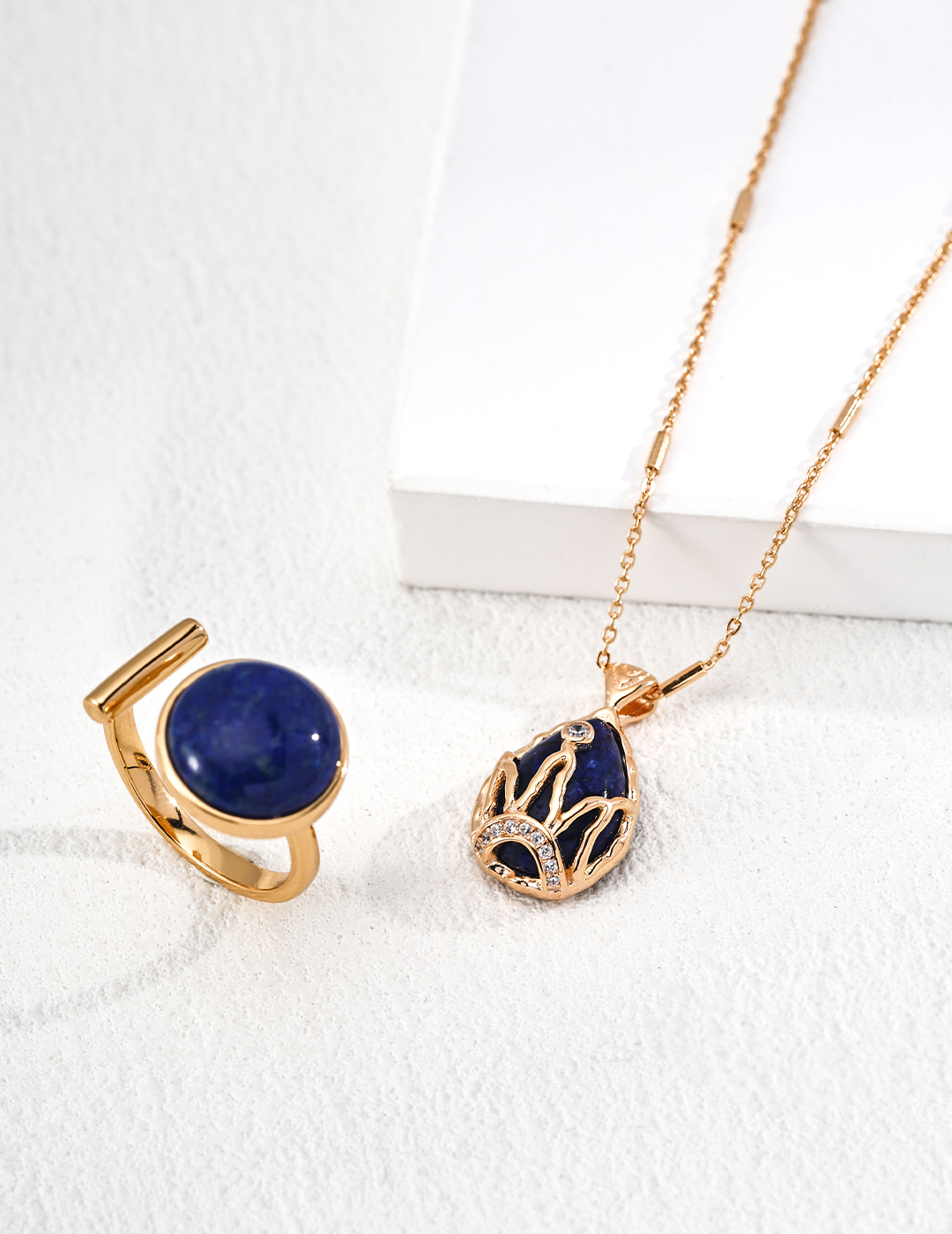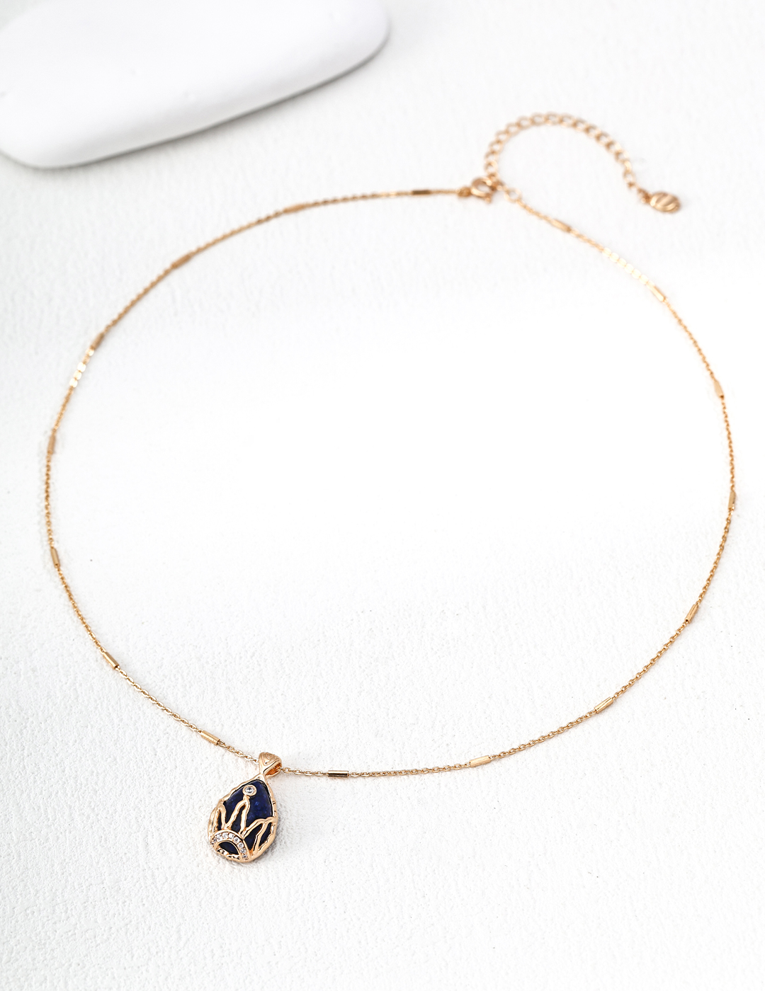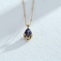 925 Sterling Silver Lapis Lazuli Crown Design Blue Pendant Necklace N0688-2