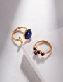 925 Sterling Silver Natural Lapis Lazuli Adjustable Open Ring R0175
