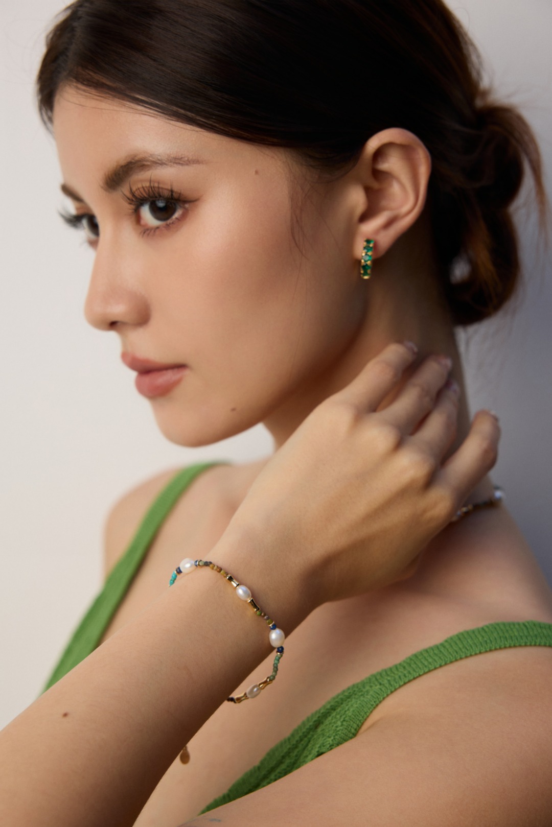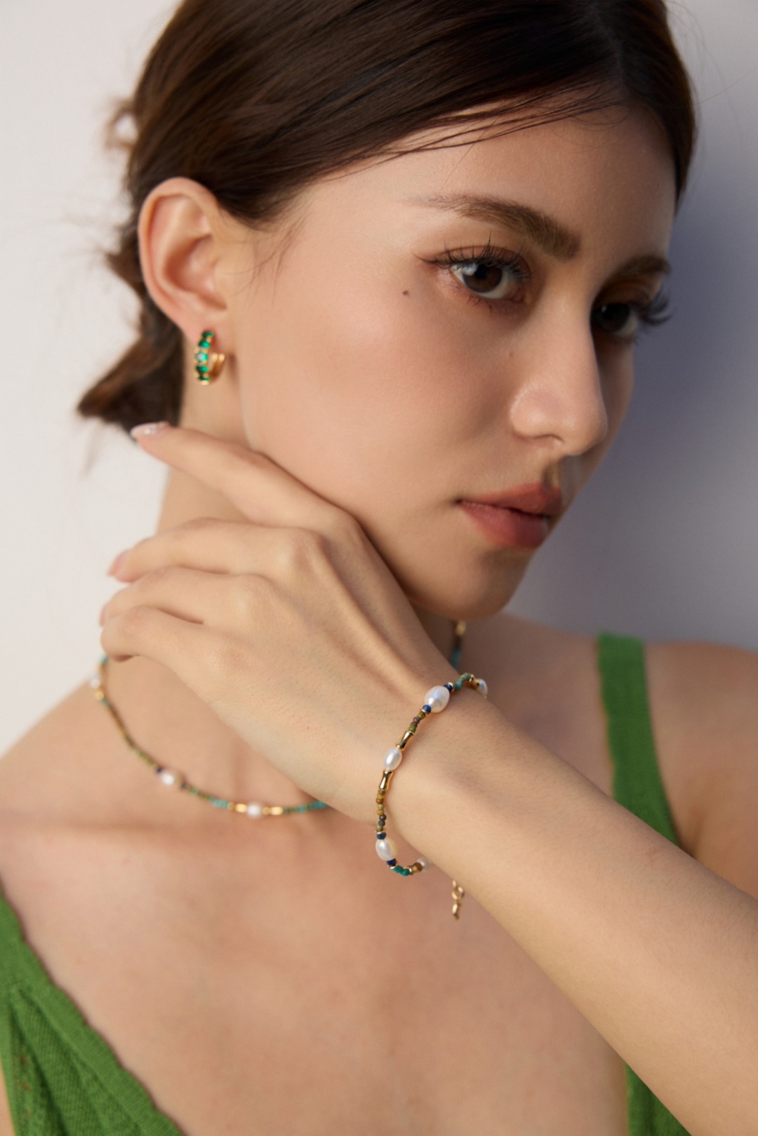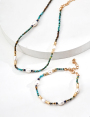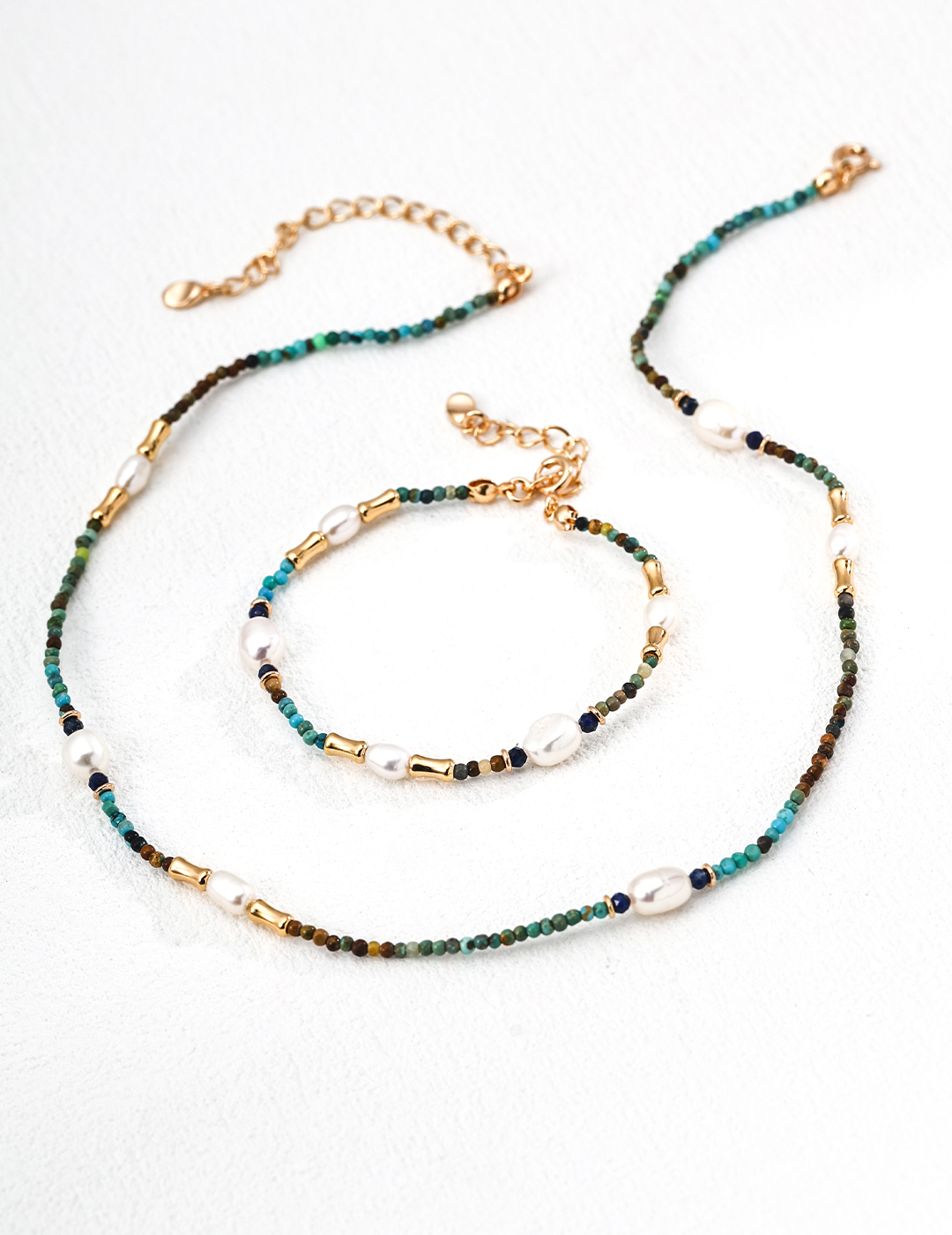 925 Sterling Silver Vintage Natural Pearl Lapis Lazuli Turquoise Bracelet B0196