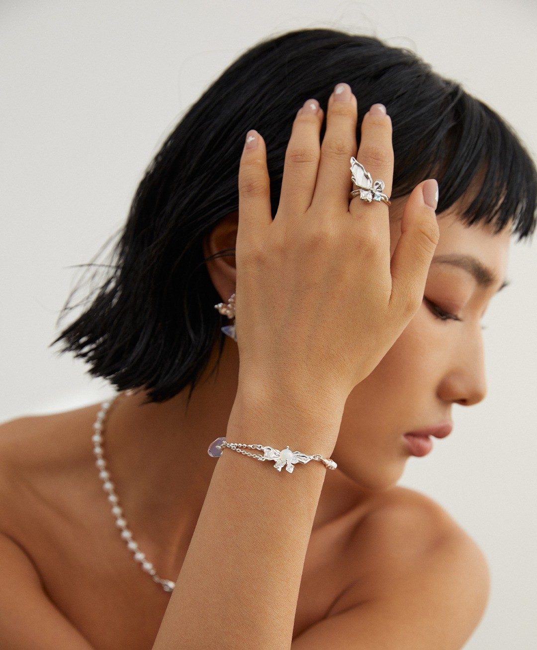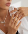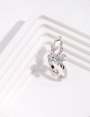 925 Sterling Silver Zircon Butterfly Wing-Shaped Adjustable Open Ring R0012