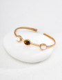 925 Simple Tiger's Eye Mother-of-Pearl Black Agate Adjustable Open Bangle B0058