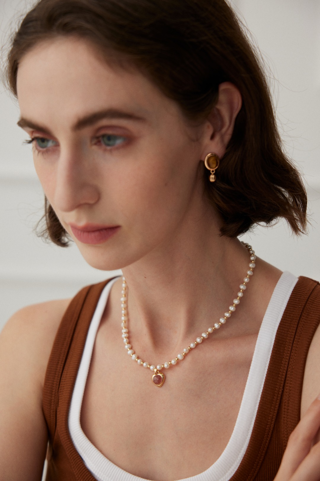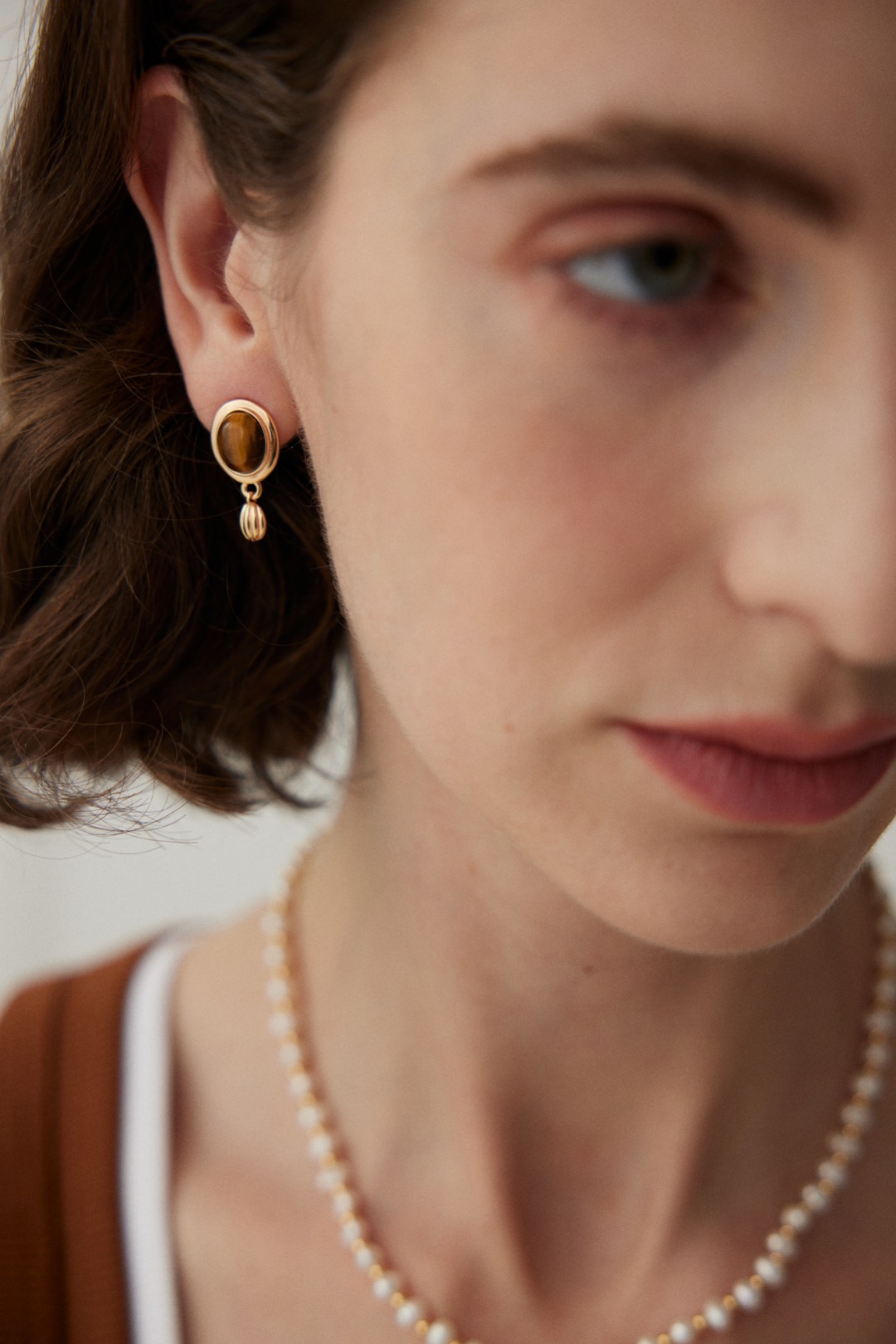 925 sterling Silver Tiger's Eye Natural Stone Shell-Shaped Pendant Earrings E01136-2