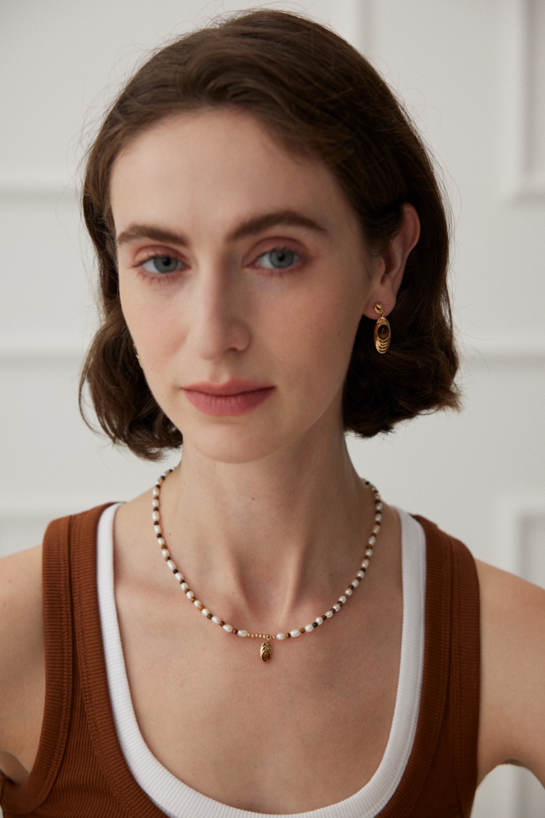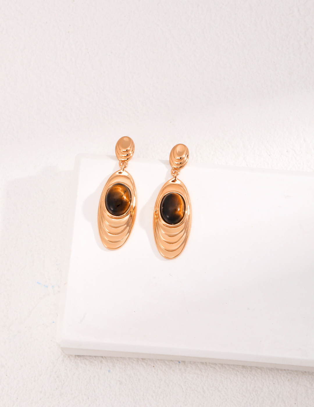 925 Sterling Silver Tiger's Eye Oval Pendant Natural Stone Earrings E01065