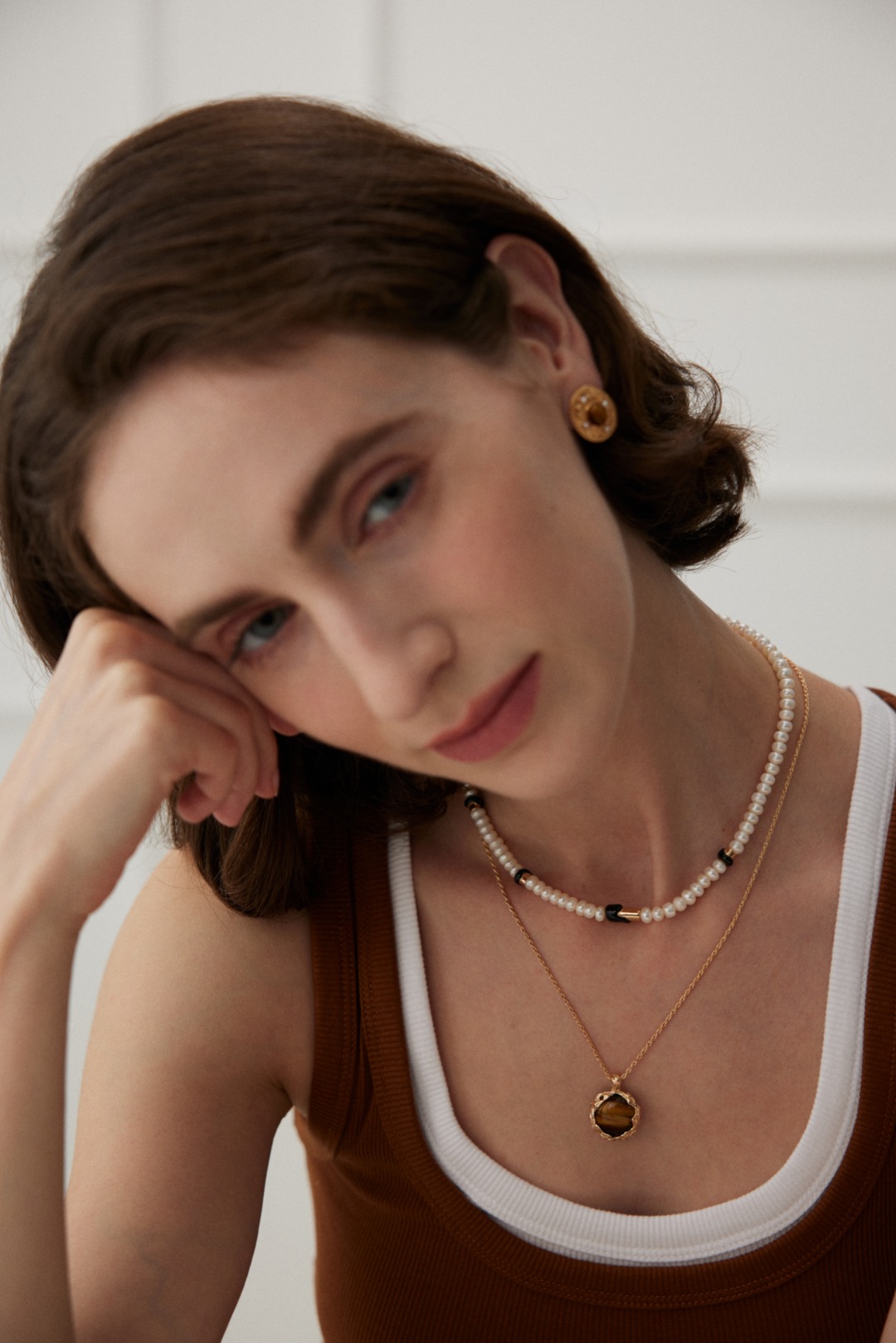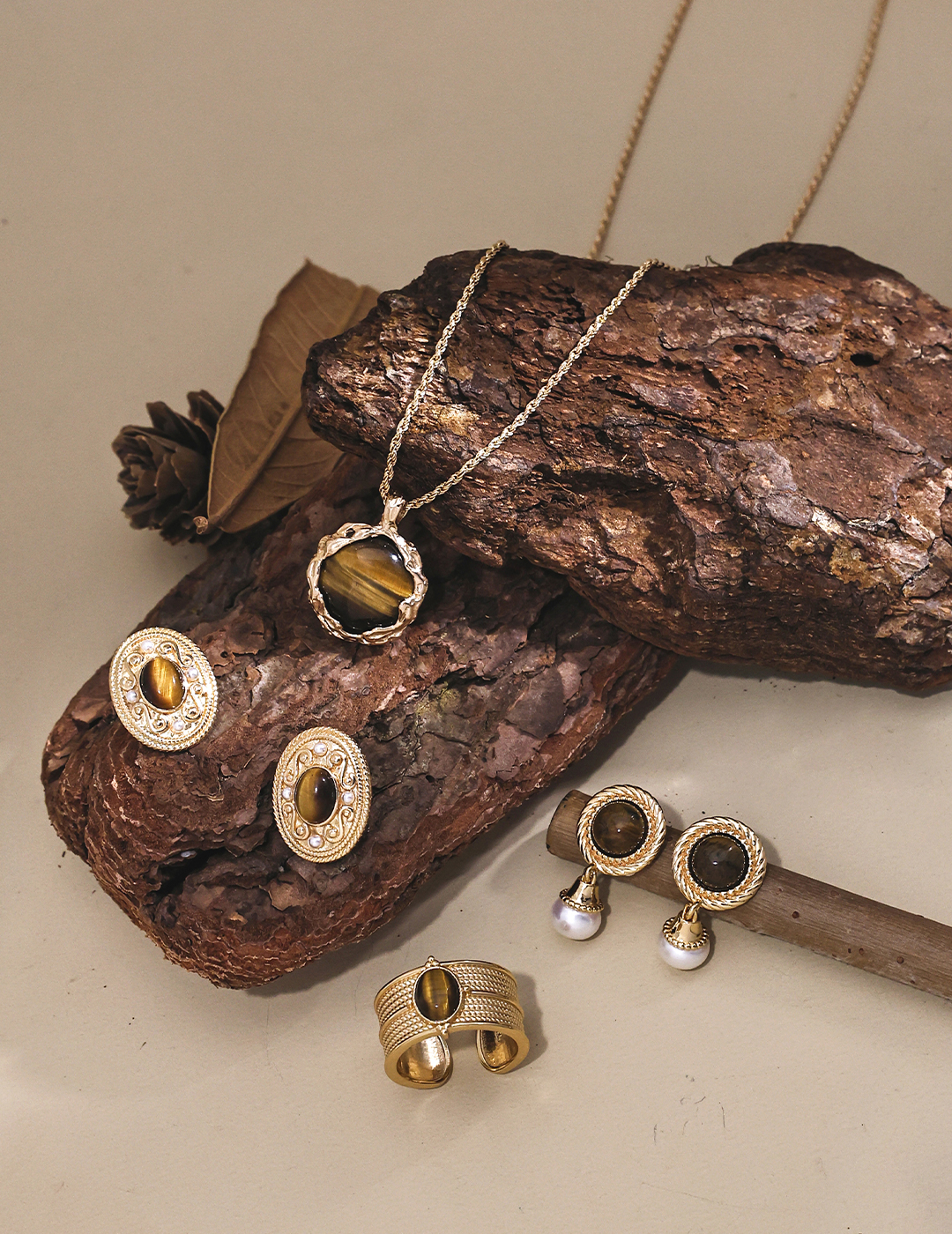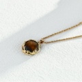 925 Sterling Silver Hand-Carved Volcanic Lava-Textured Tiger's Eye Stone Pendant Necklace N0457