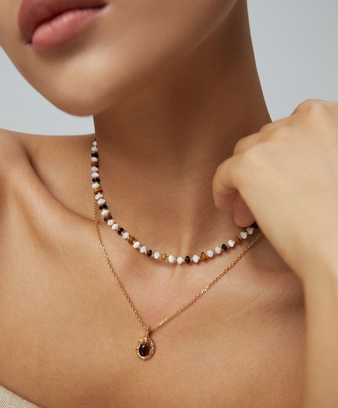925 Sterling Silver Tiger's Eye Bead Necklace N0367