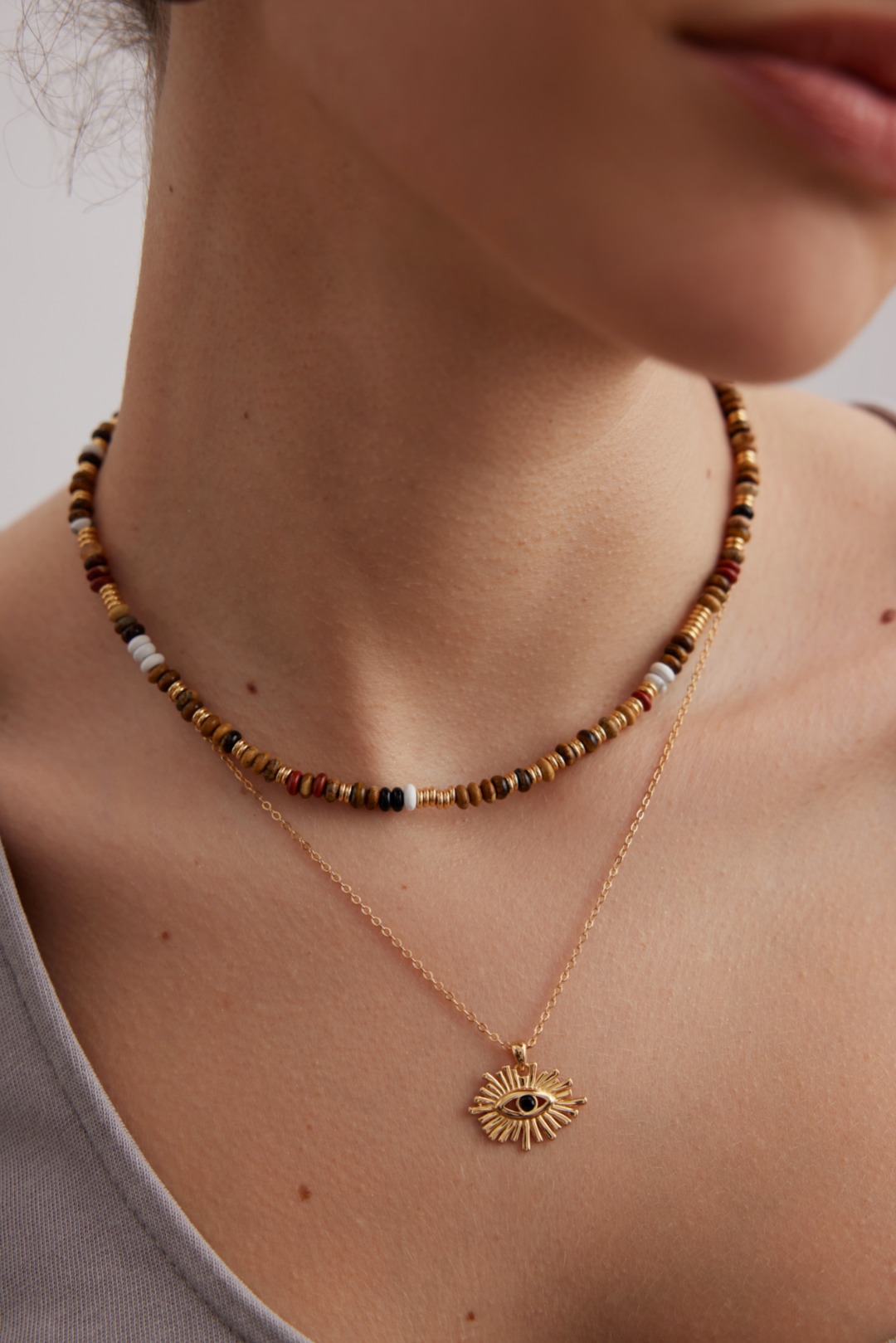 925 Sterling Silver Tiger's Eye Bead Necklace N0441
