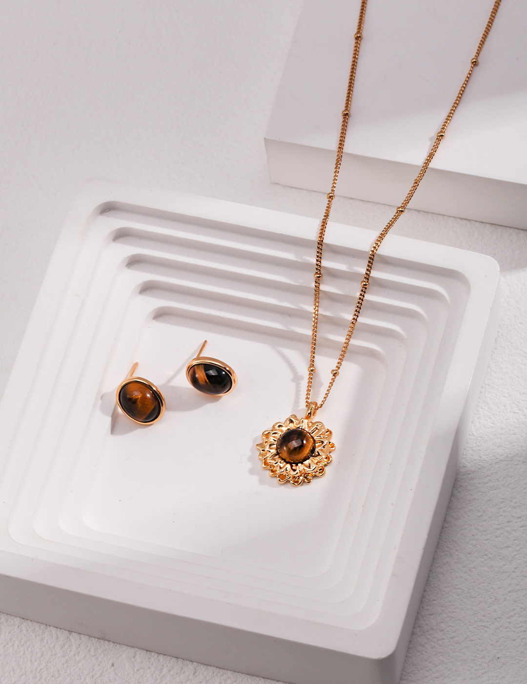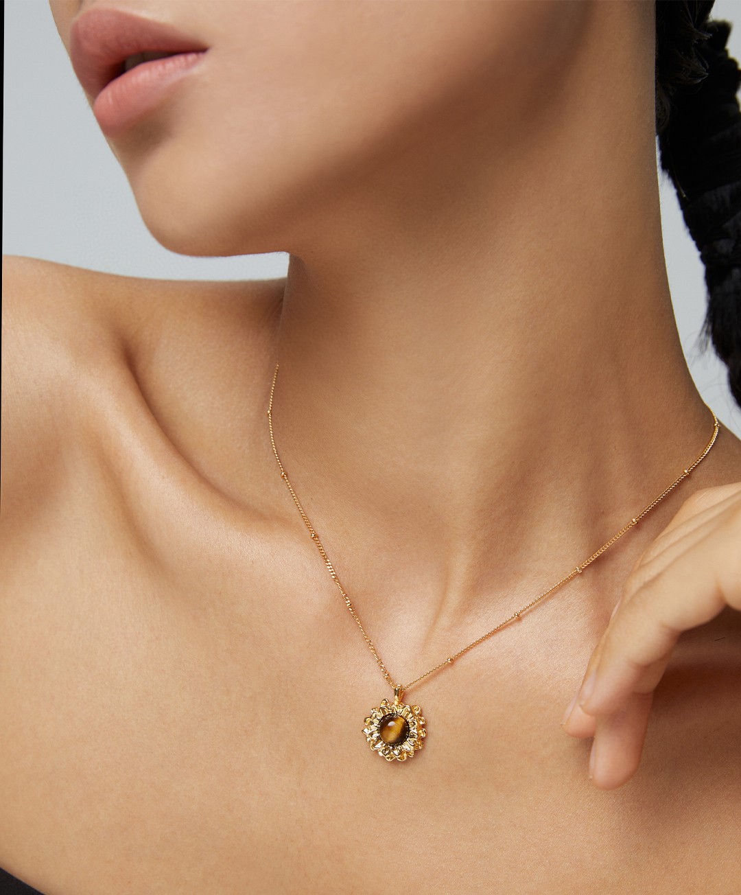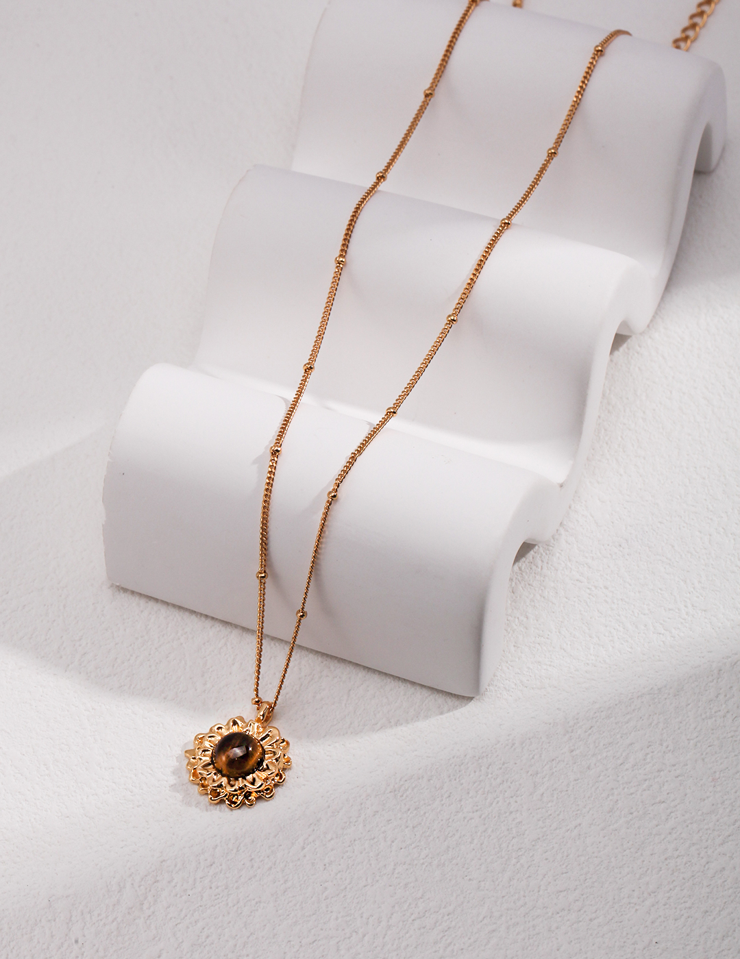 925 Sterling Silver Tiger's Eye Flower-Shaped Pendant Necklace N0397