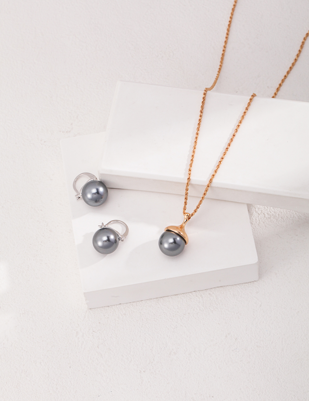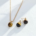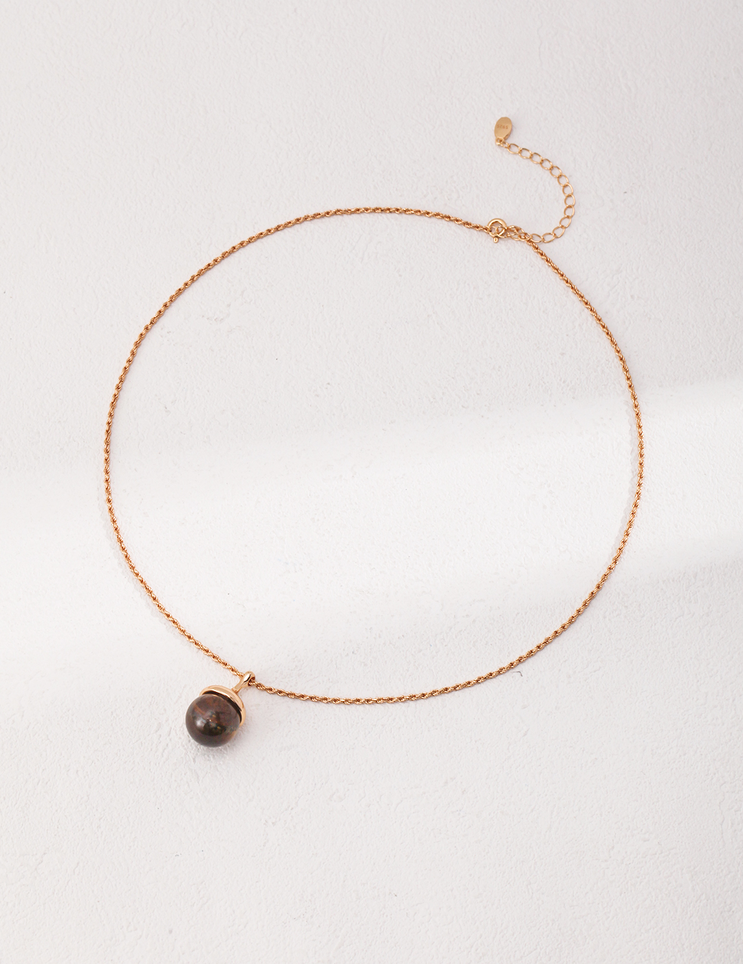 925 Sterling Silver Tiger's Eye/Grey Mother-of-Pearl Pinecone-Shaped Pendant Necklace N0473