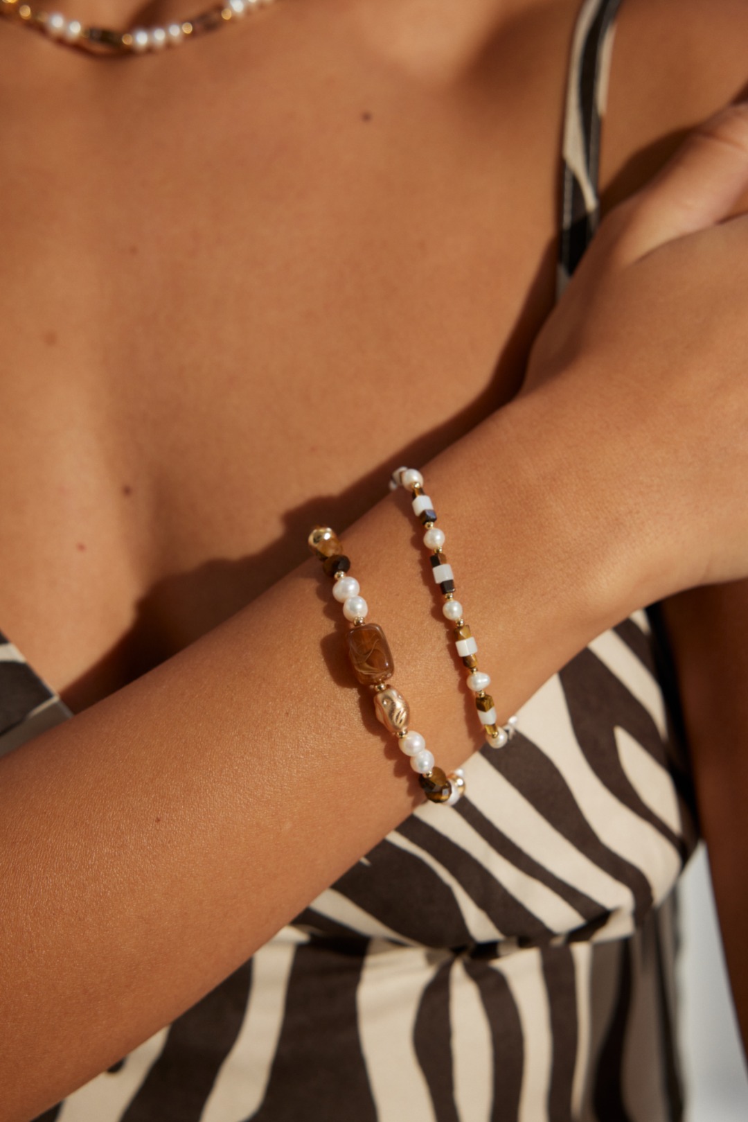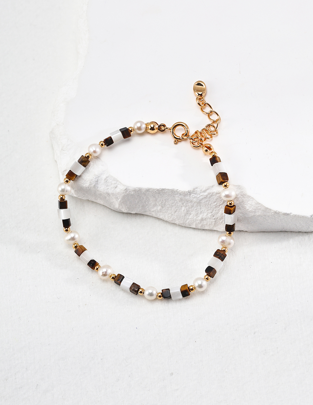 925 Sterling Silver Natural Mother-of-Pearl Tiger's Eye Adjustable Bracelet B0133-2