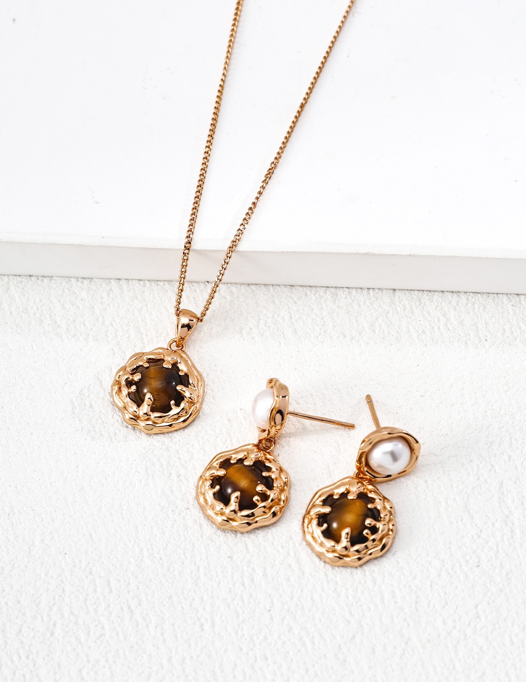 925 Sterling Silver Vintage Blue Turquoise/Tiger's Eye Pendant Necklace N0703